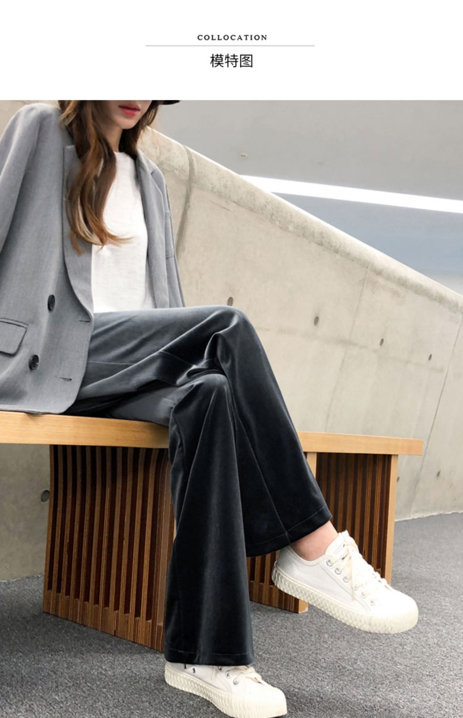 今年大火的金丝绒阔腿裤,不起球、不掉毛!直筒宽松裤腿有垂感,裤面不起皱,不变形!超级显腿直,巨显瘦,实力遮肉!轻松穿出高瘦美!
