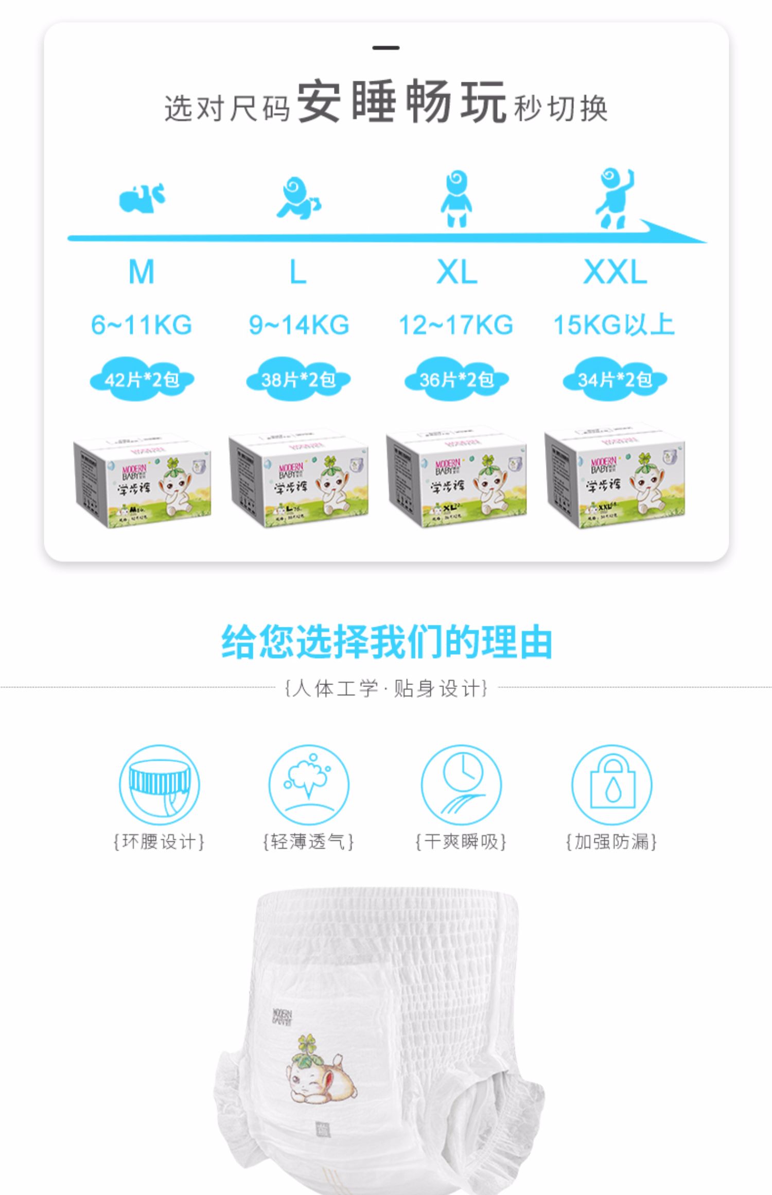 记得备注码数【M码84片,L码76片,XL72片,XXL68片】潮流宝贝拉拉裤,超薄透气,亲肤面层,绵柔触感,弹力环腰不变形,垂直导流能呼吸,薄的舒适透气干爽,安全不过敏,适合宝宝的拉拉裤,单片仅0.