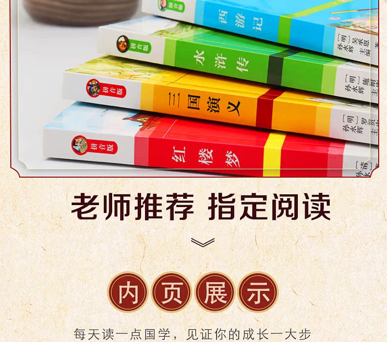 四大名著全正版彩绘注音版,教育部推荐读物,大字彩图注音,页末加以想一想,引导孩子思考,小学生必读经典名著!插图精美,高清印刷,纸质超好。