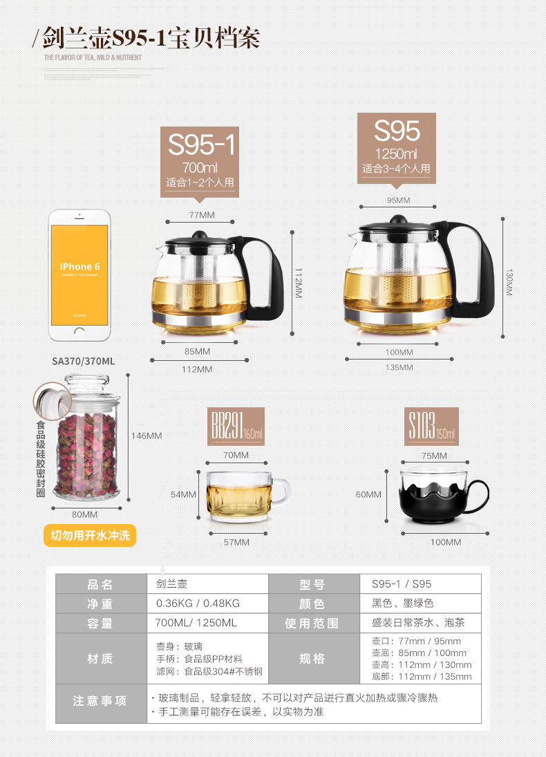 玻璃茶壶过滤,泡茶壶凉冷水壶,耐热高温,花茶壶水杯茶具套装,多款组合,个人家庭均适用,超值实惠。
