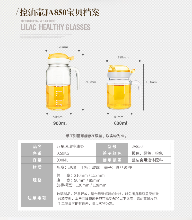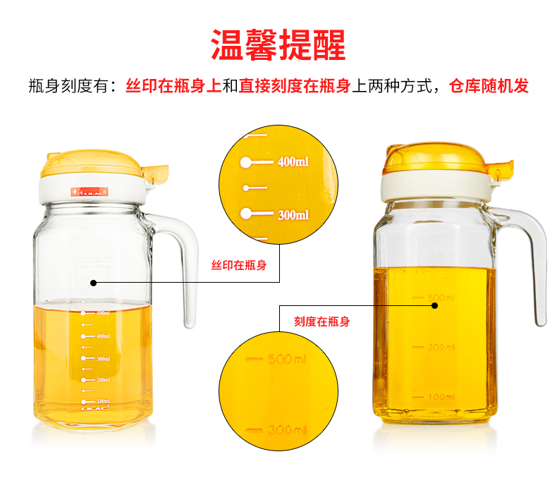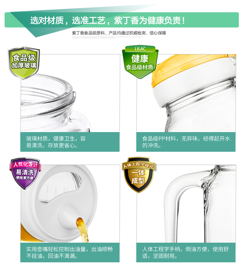 精选优质无铅玻璃,装油、装醋、装酱油等,多色多规格,一壶多用,做工精细,健康环保,耐高温抗菌防腐,结实耐用,居家必备~
