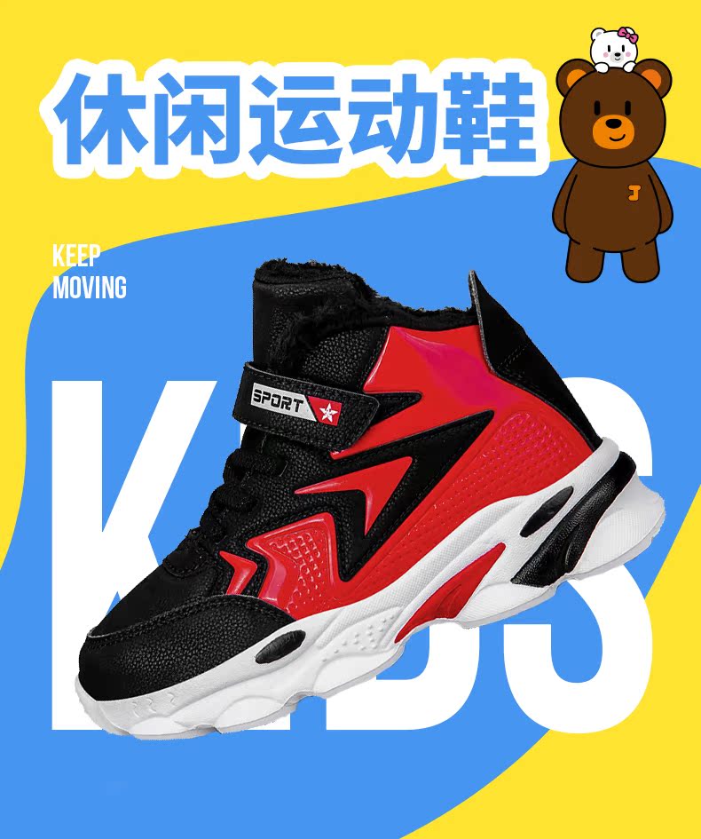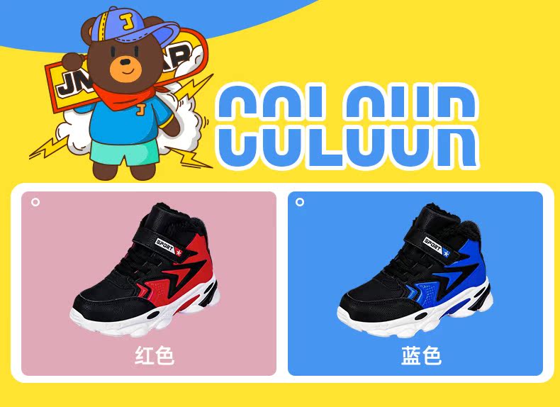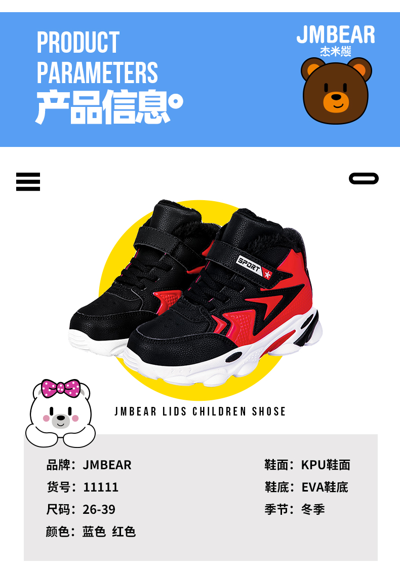 经典款杰米熊运动鞋,孩子穿上超帅的。加绒的,穿上非常暖和~冬天了,特别抗寒抗冻!