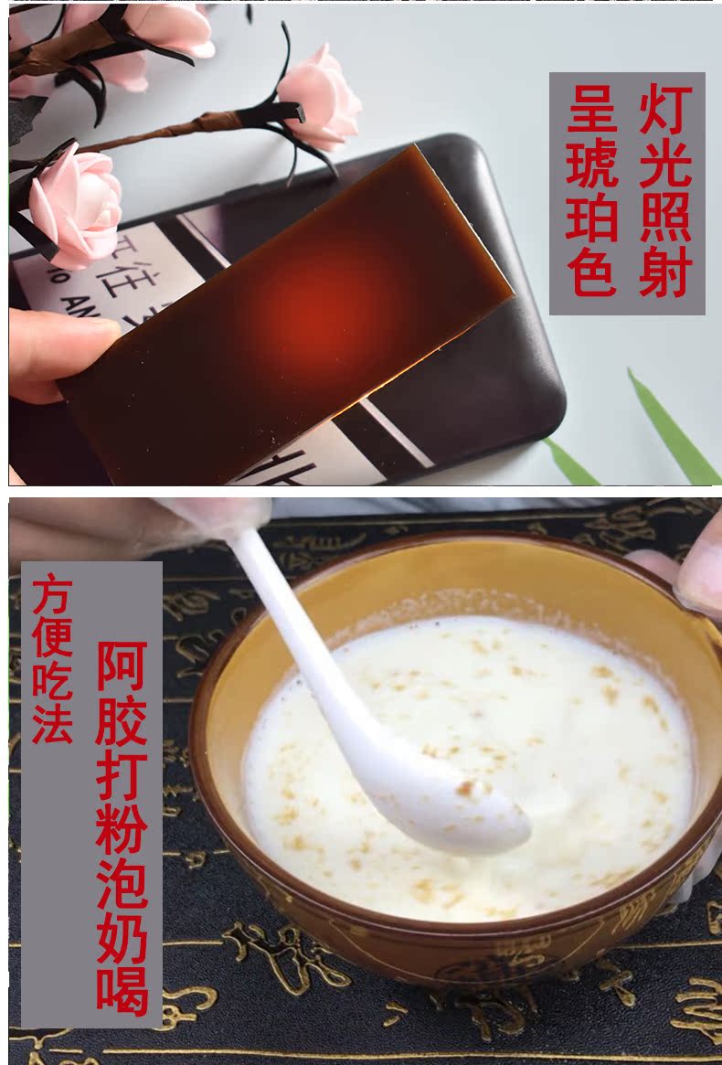 女士滋补选阿胶,优选地道阿胶,东阿古方,匠心熬制,光泽如琥珀,透光无杂质,半透明血红色,每天吃一点,养出好气色~自己在家熬阿胶糕,干净卫生,吃的放心【赠运费险】