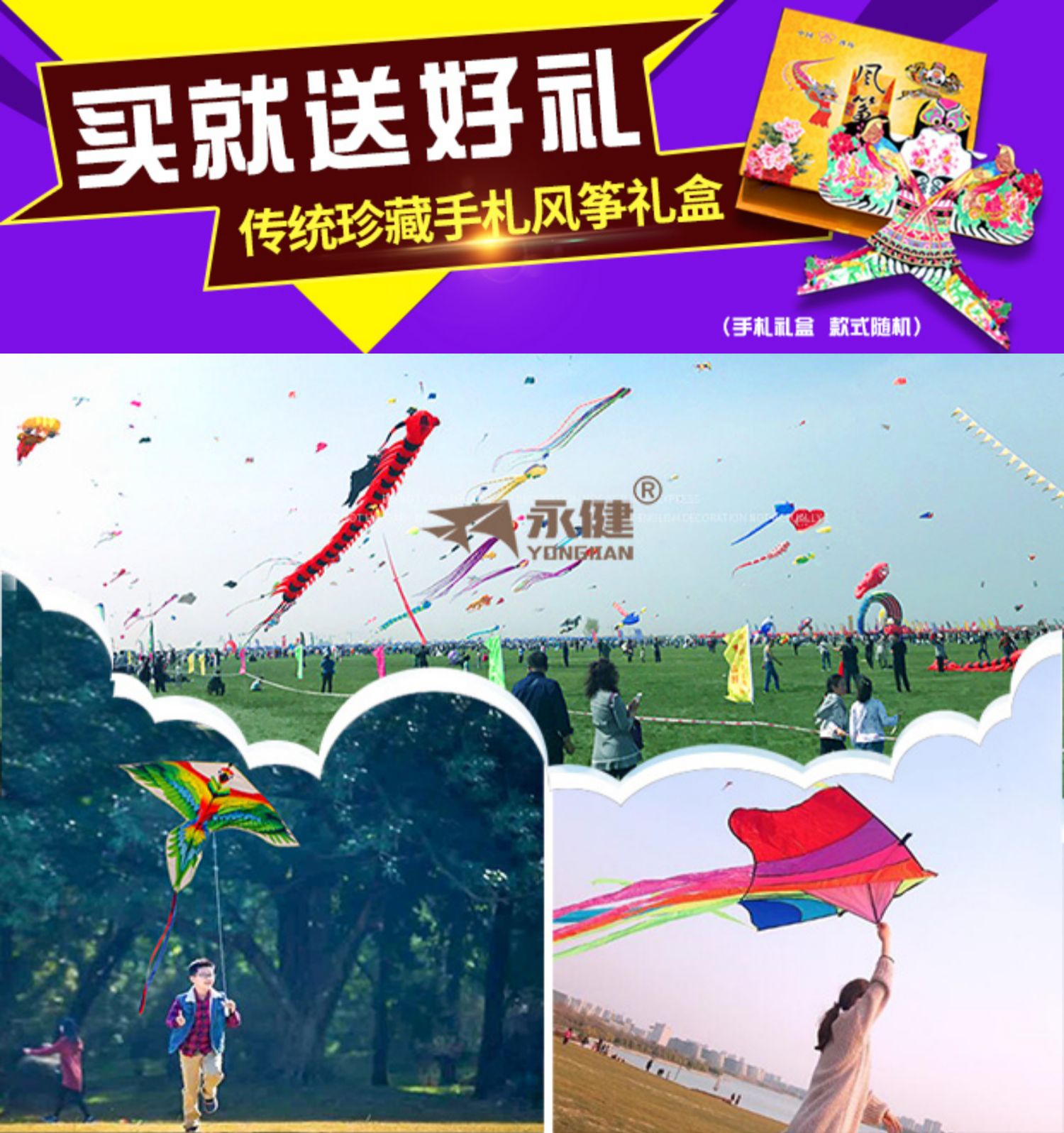 【多款可选,初学者微风易飞,不飞包退!】正宗潍坊制风筝,骨架很牢固,微风就能放起来,出门踏青春秋游必不可少哦,全家都能参与,亲子活动之选!和宝贝放飞一道风景~【赠运费险】