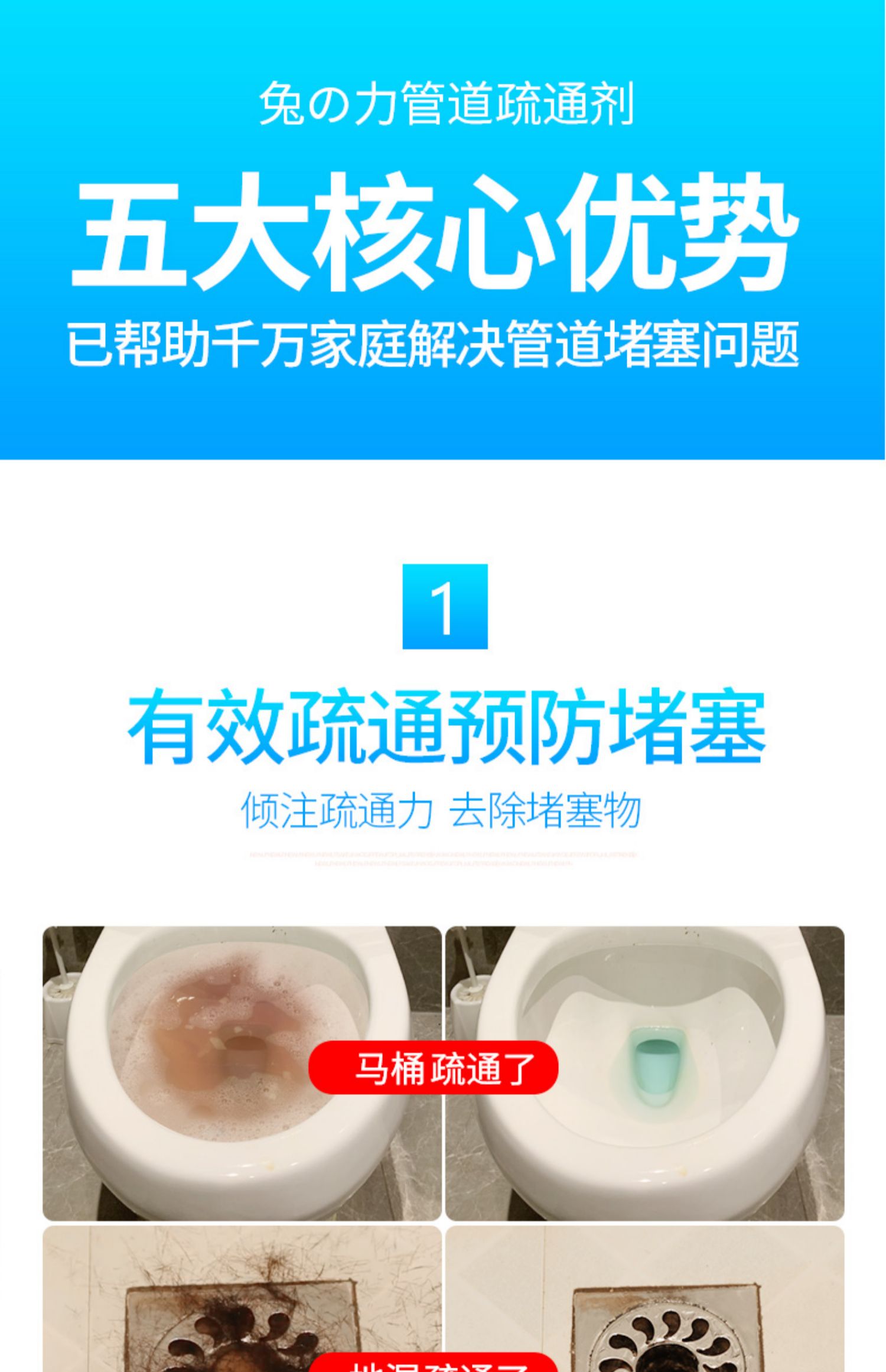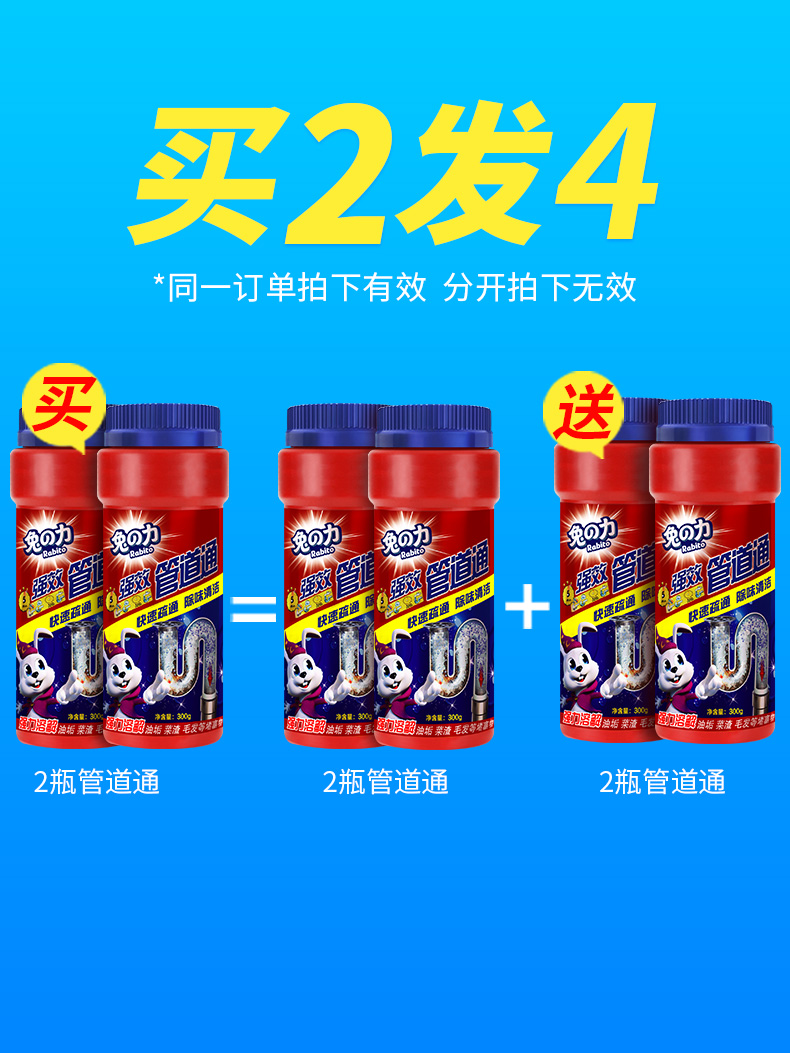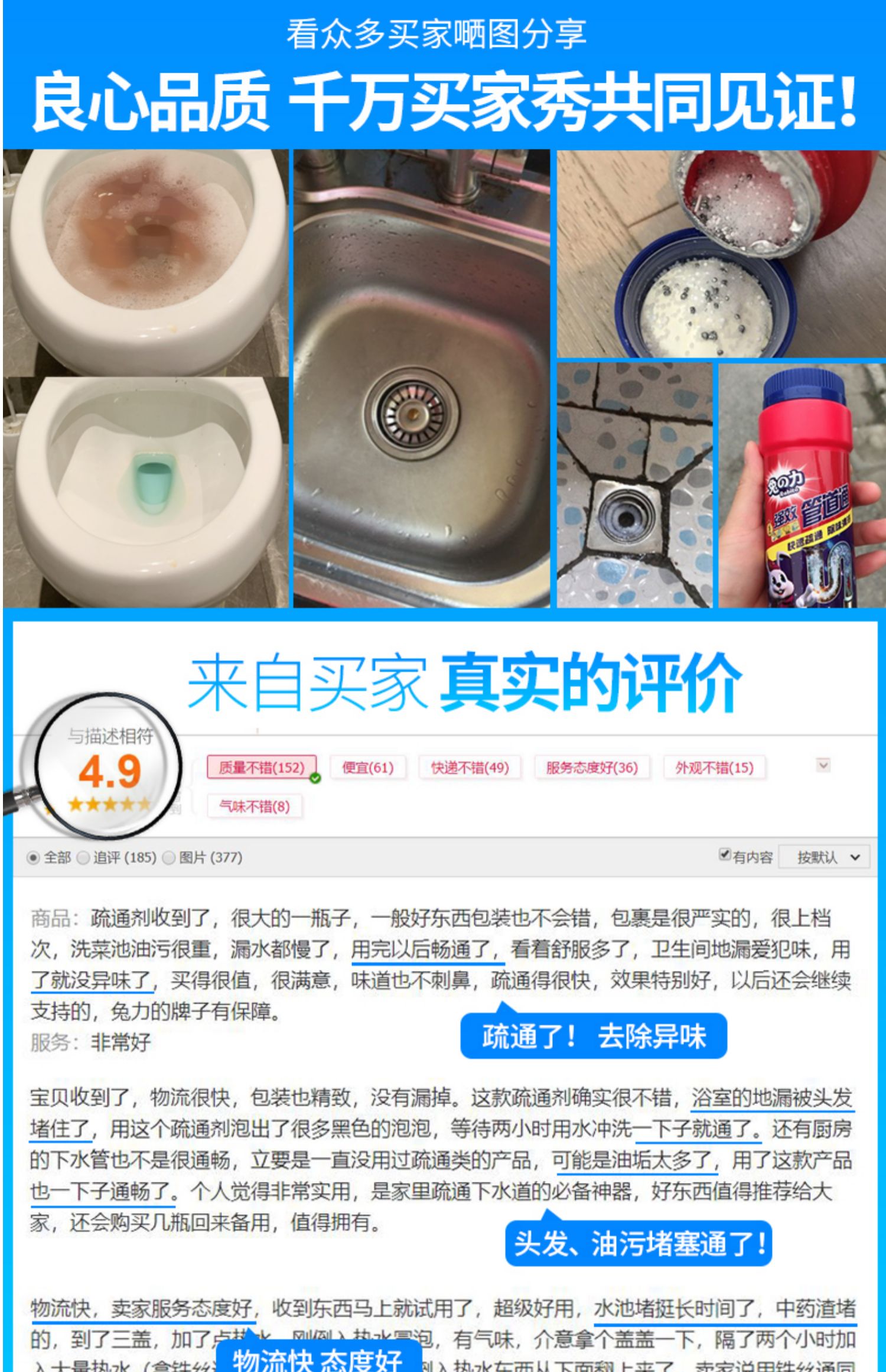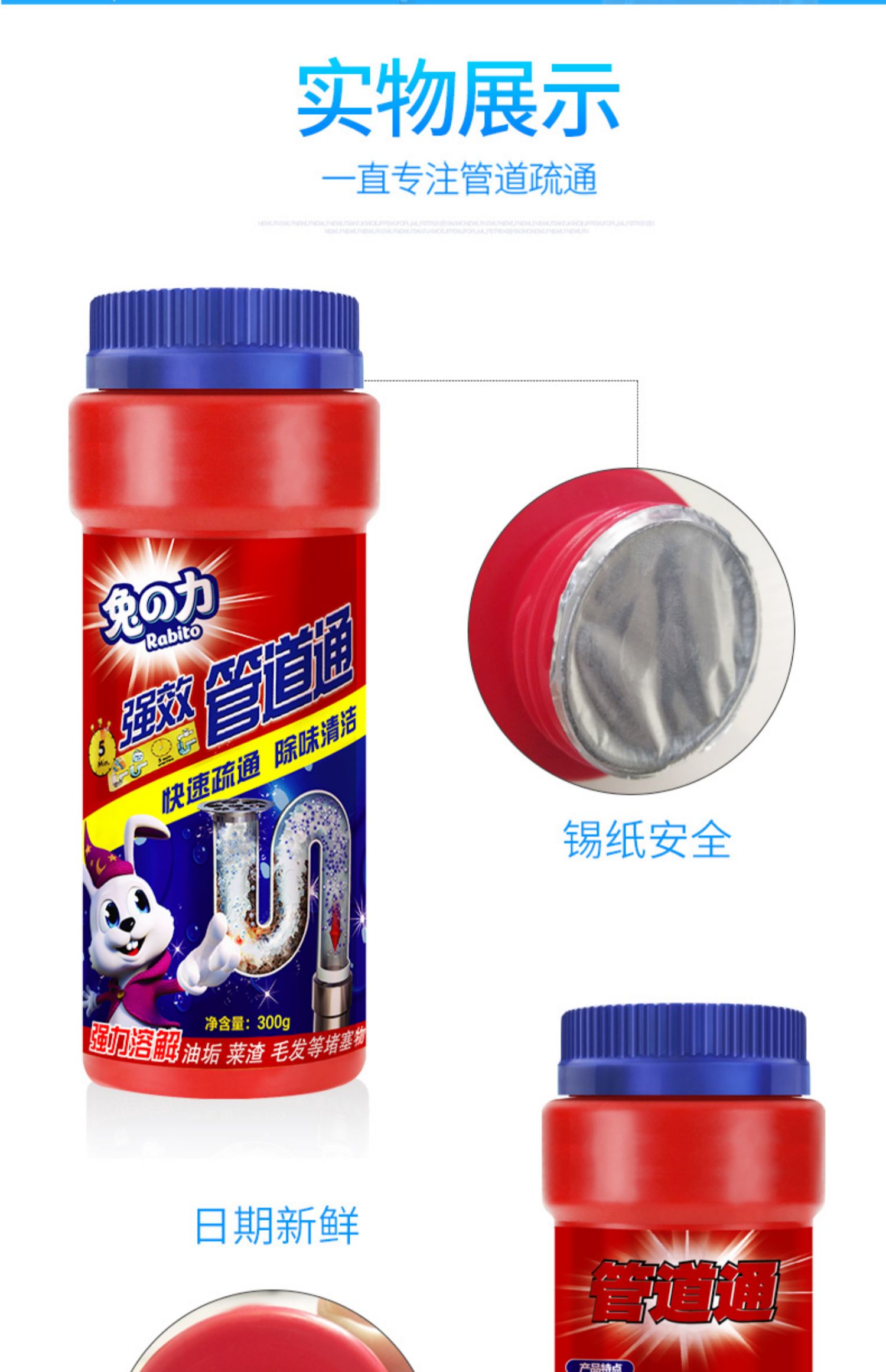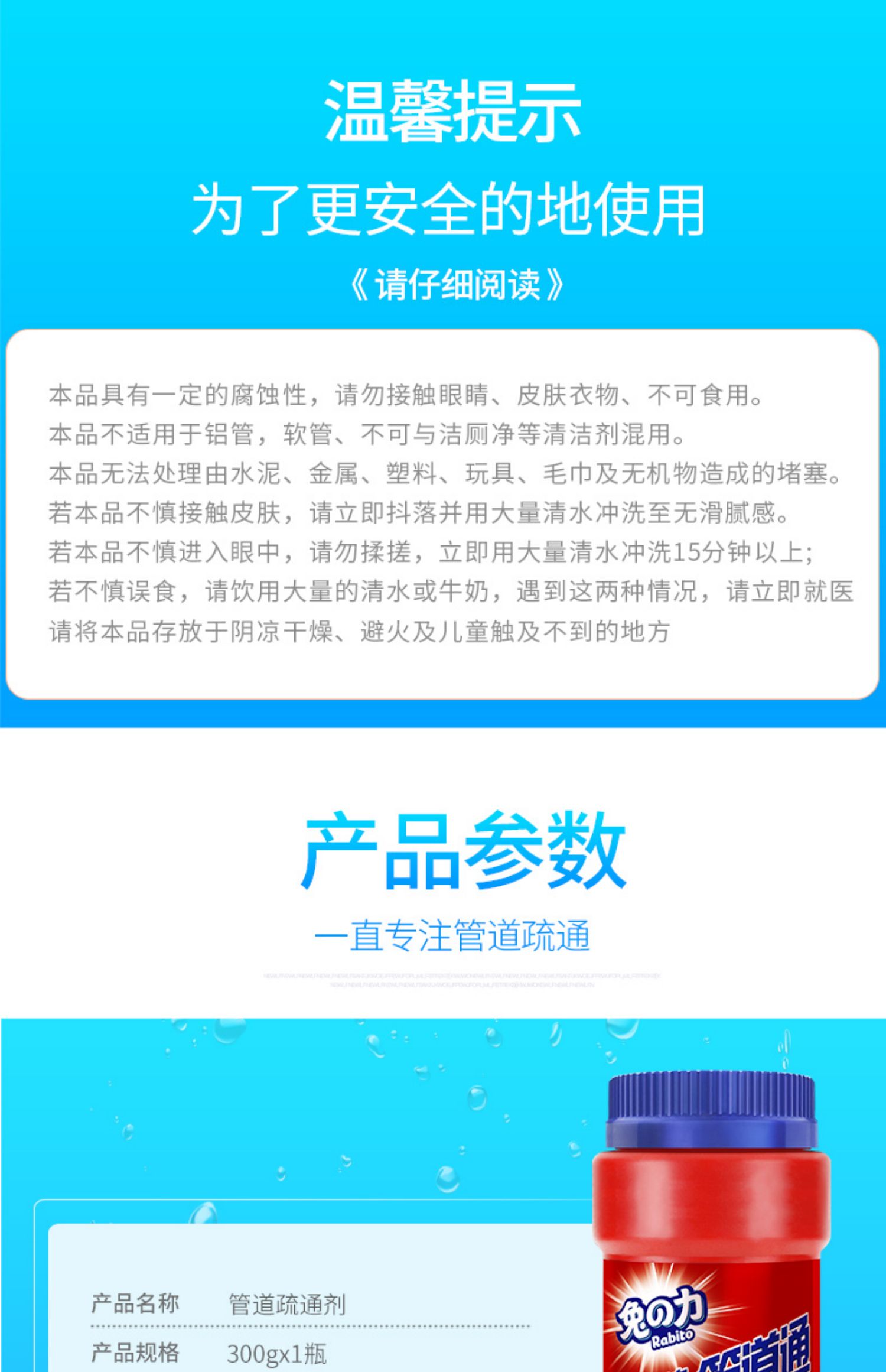 【永辉、大润发等各大超市均有售】塑料管道疏通剂,强力溶解附着在管道内壁上的油渍、食物残渣、毛发等粘稠污物,塑料软管也可使用,预防堵塞,提前备货!【赠运费险】