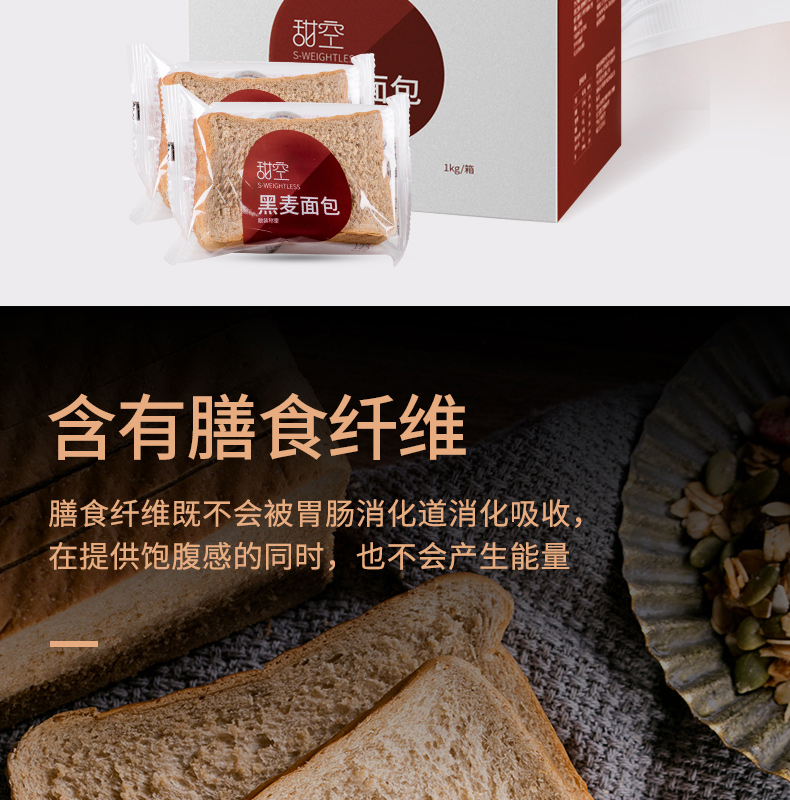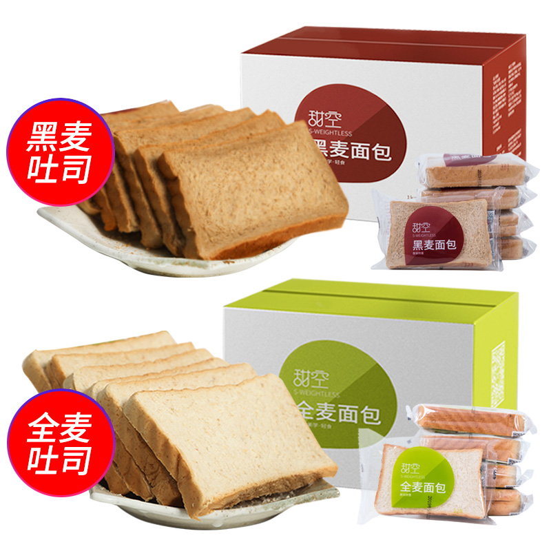 【甜空】独立包装全麦黑麦面包1斤20片,无蔗糖,0脂肪,更健康的早餐,拒肥胖,饿了、困了来一包!吃起来酥软有嚼劲,配一杯牛奶更营养!让每一个早晨充满力量!!!