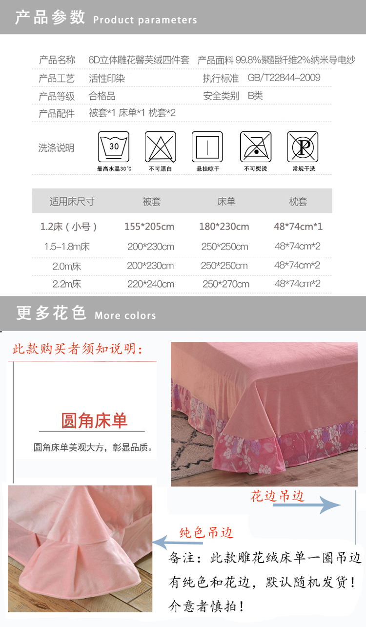 6D雕花绒四件套,细腻绒毛,质地蓬松,舒适透气,零甲醛不刺激皮肤,加厚保暖双层,给你加倍的温暖,多款多色可选,温暖呵护!超多颜色可选【赠运费险】