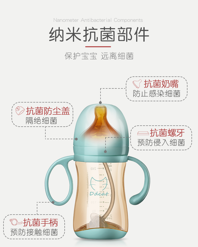 纳米抗菌,耐摔防呛,送抗菌奶嘴,安心防胀气。