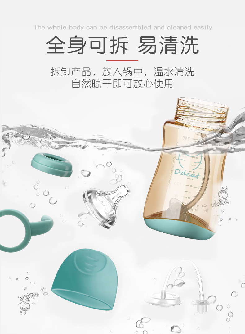 ddcat婴儿奶瓶宽口径抗菌防胀气奶瓶