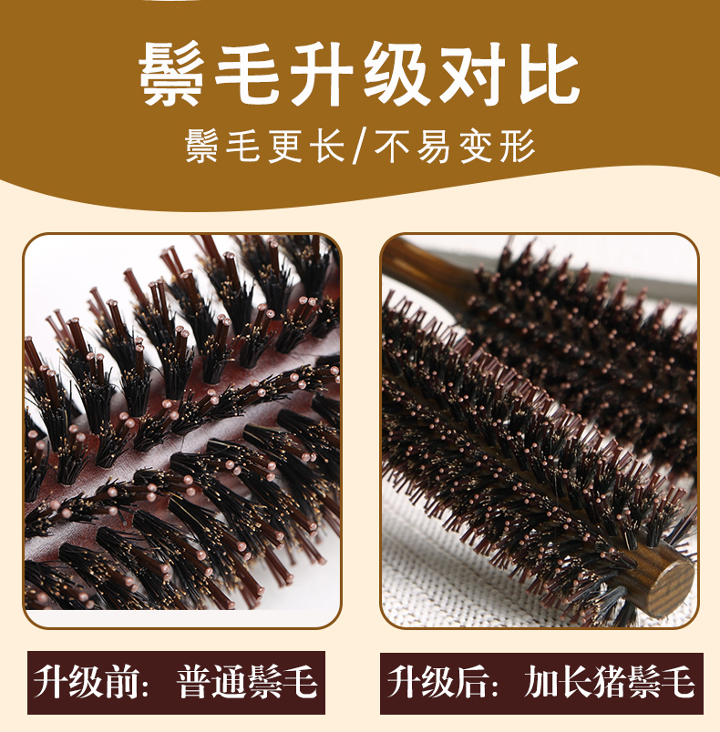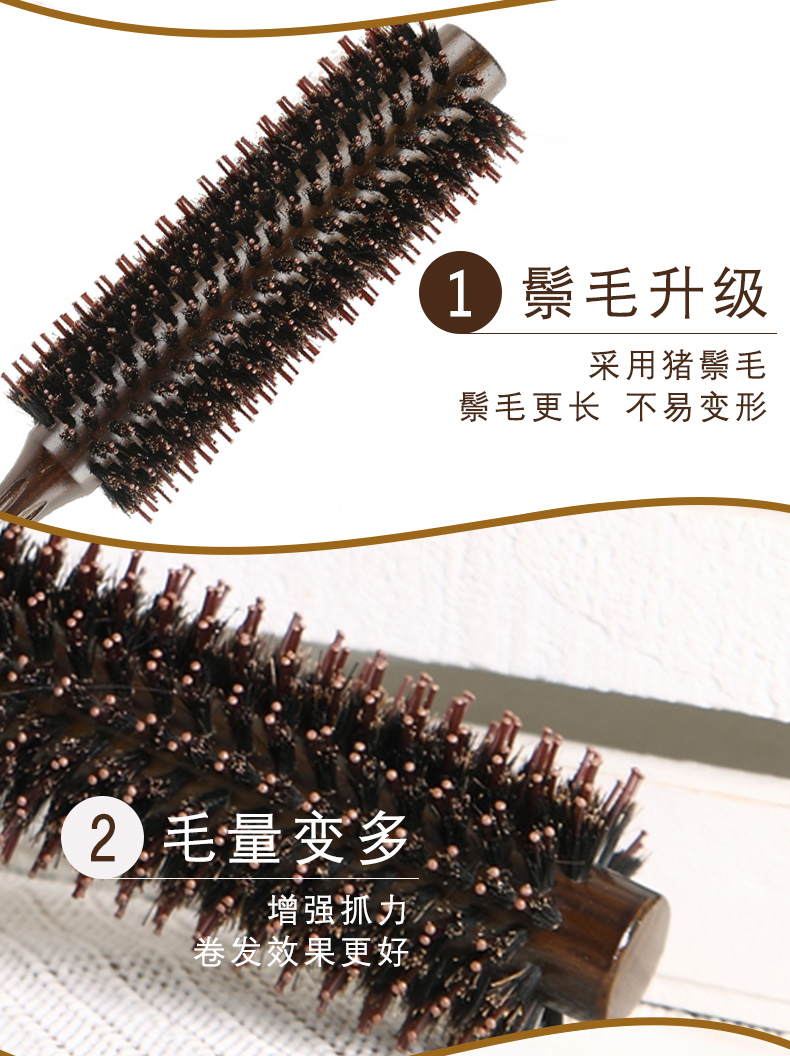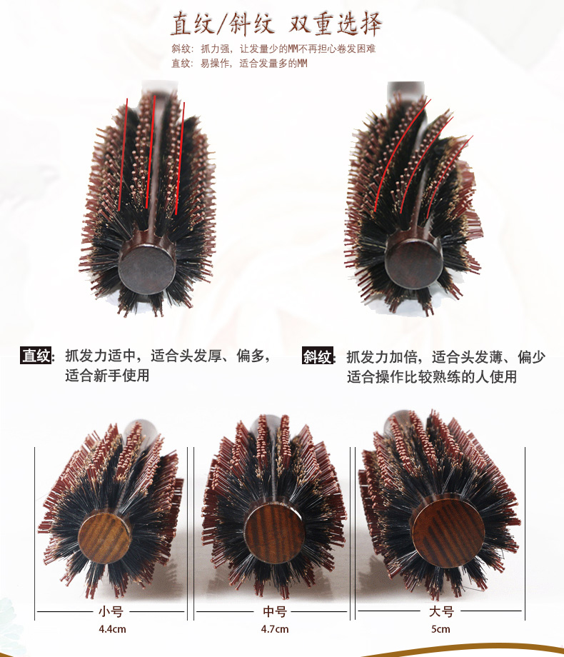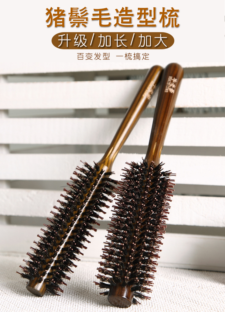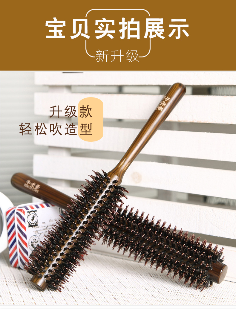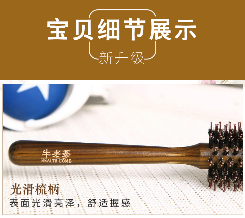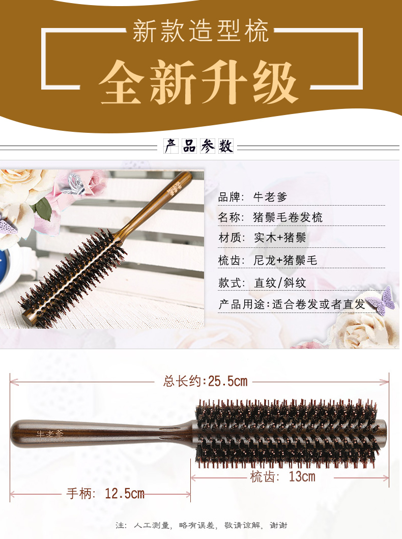 【牛老爹卷发梳】轻松造型,直纹,斜纹,双重选择,大中小三种型号可选。光滑梳柄,实木梳体,结实耐用,猪鬃毛,尼龙梳齿。好不好?用了才知道!