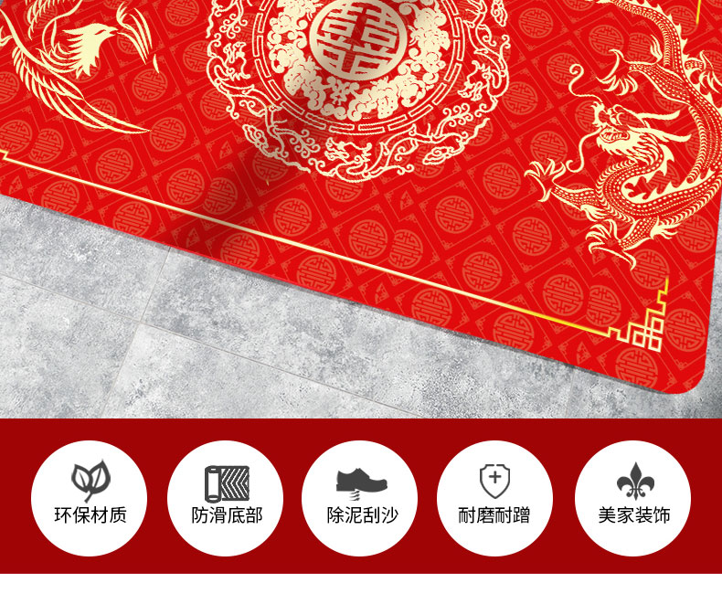 喜气洋洋,万紫千红。门口家用防滑,防水,橡胶脚垫。天然橡胶制作,天然环保,过年结婚喜事必备地垫!