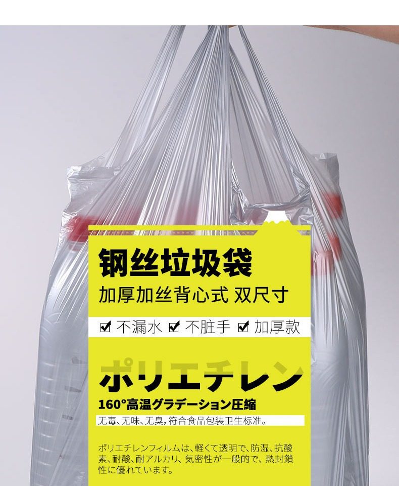 【拍2份送100只!】出口日本,无毒、无味、无臭!加厚钢带不脏手防刺穿,环保无异味,光泽度好,韧性十足,加大加厚不漏水,承重可达20斤,断点设计,方便快捷,用了会上瘾的垃圾袋~