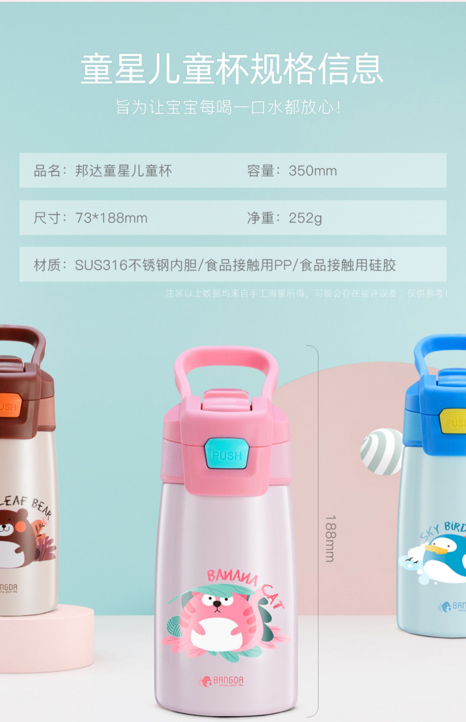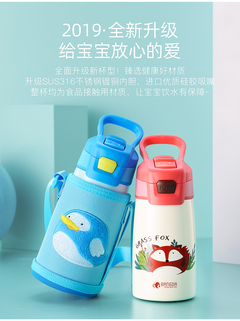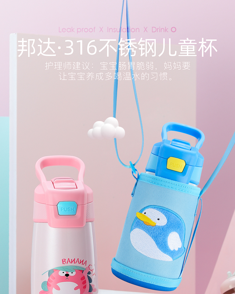 【薇娅直播力荐】【邦达】大容量儿童鸭嘴保温杯,可爱便携保温杯,316不锈钢内胆,给宝宝健康呵护,隐藏式吸嘴设计,有效防止细菌灰尘进入,加宽杯口,易清洗,密封防漏,长效保温【赠运费险】