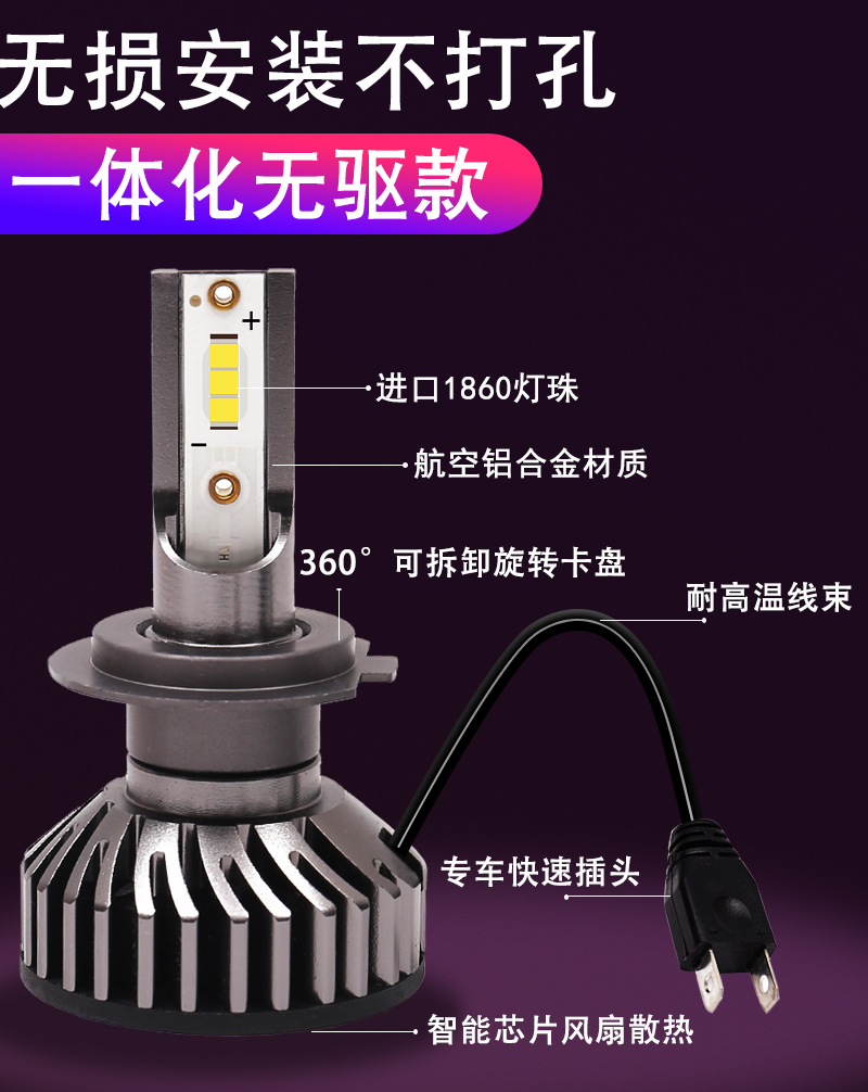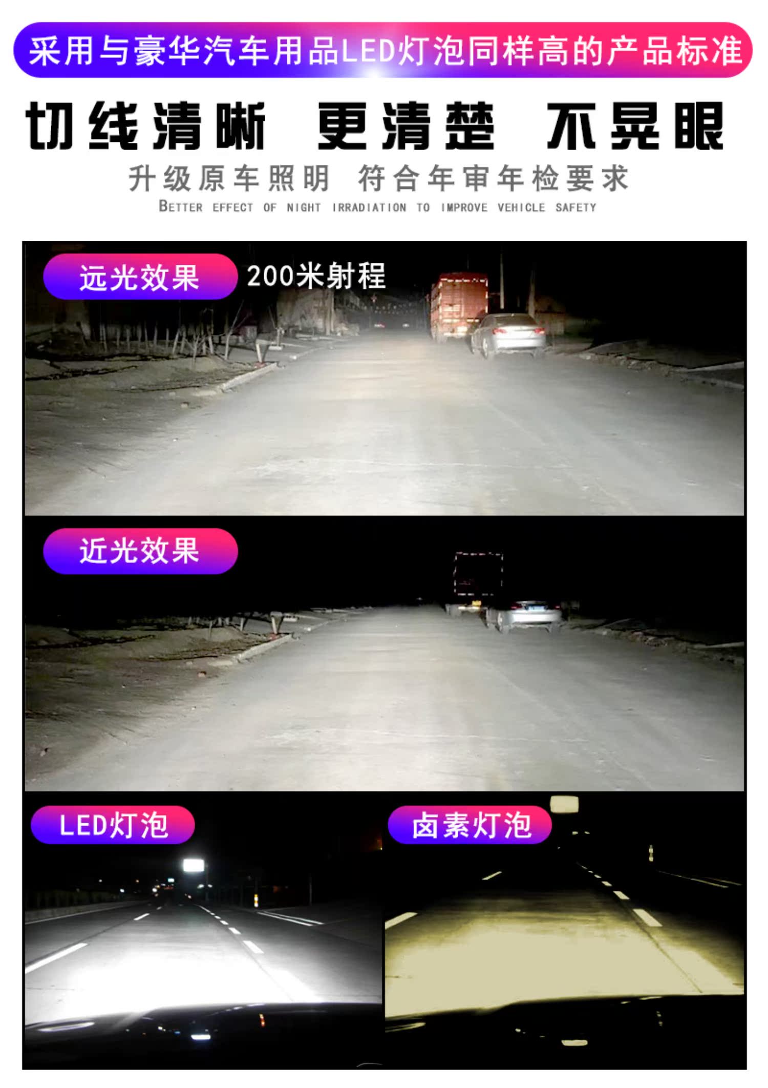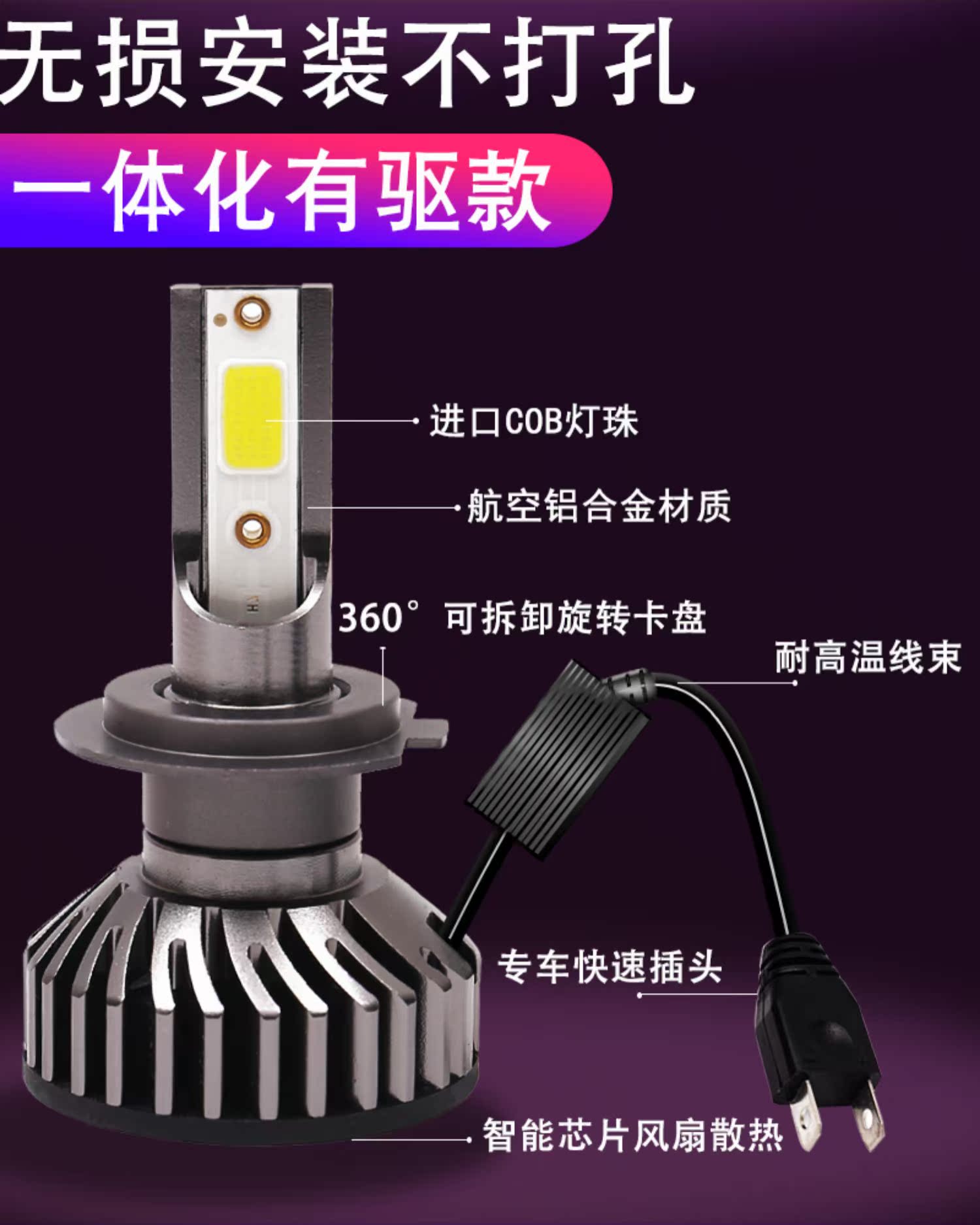 爆款!高亮聚光,体积小巧,瞬间启动,寿命长,不散光,无损安装,无损升级高配白光,经久耐用,一体化设计,品质保障,超强超亮LED大灯汽车【赠运费险】