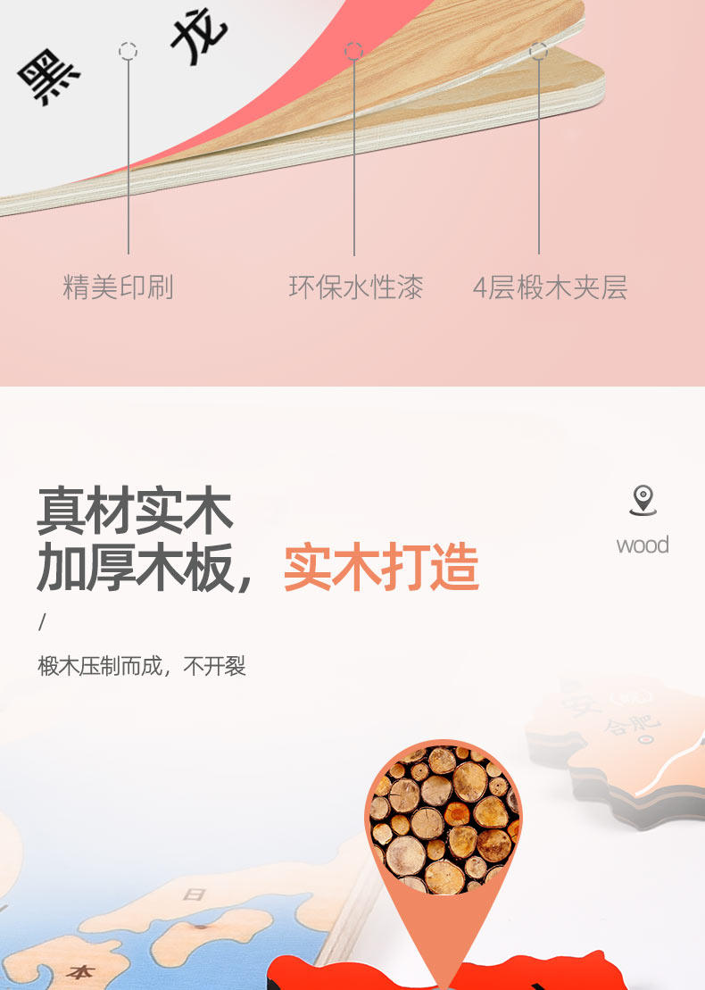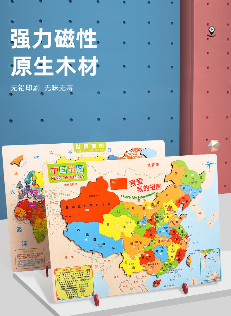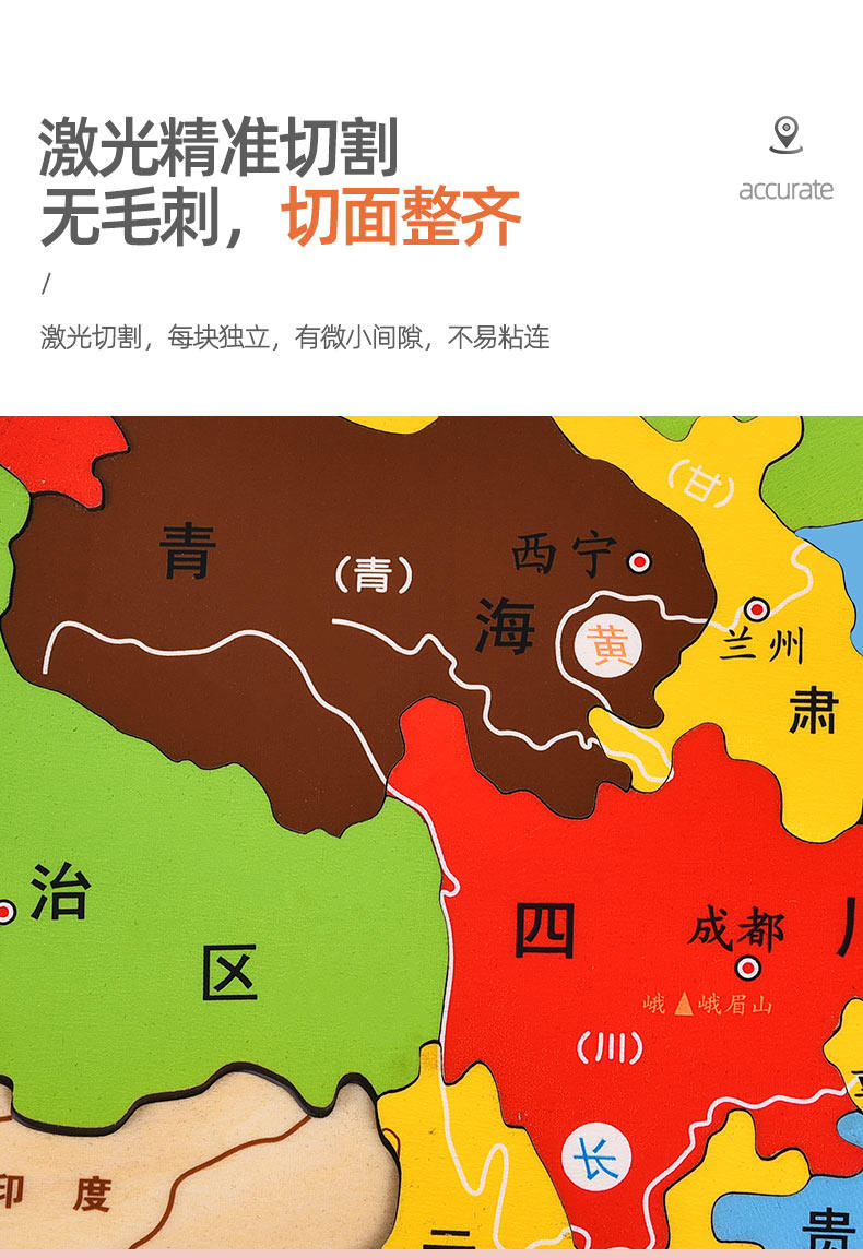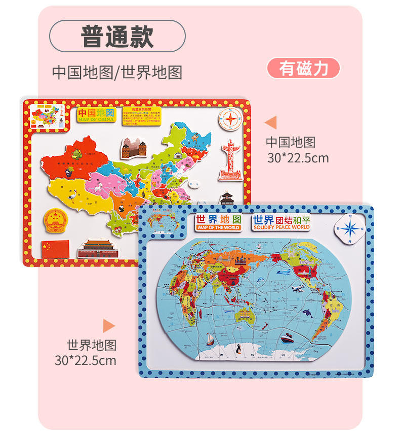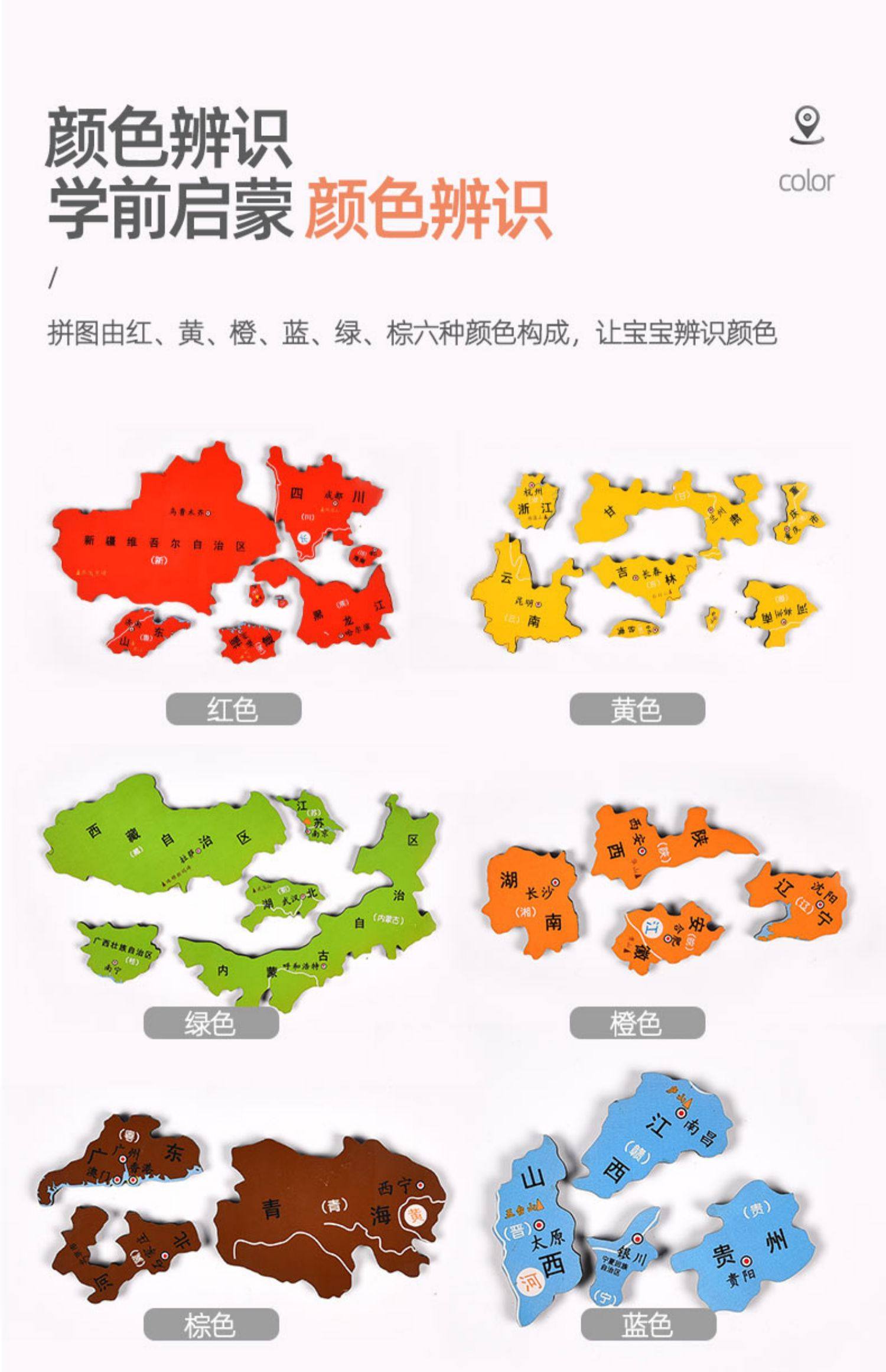 【下单就送3件儿童拼图】中国地图拼图,线下一块地图拼图就要几十元!寓教于乐,能玩还能学习知识,做个聪明的宝宝~拼色设计,丰富视觉效果,培养宝宝对地理的兴趣,体验亲子的乐趣~
