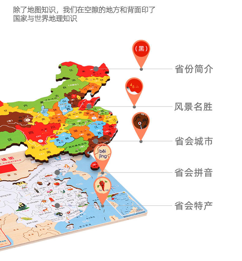 中国地图拼图早教益智玩具儿童积木