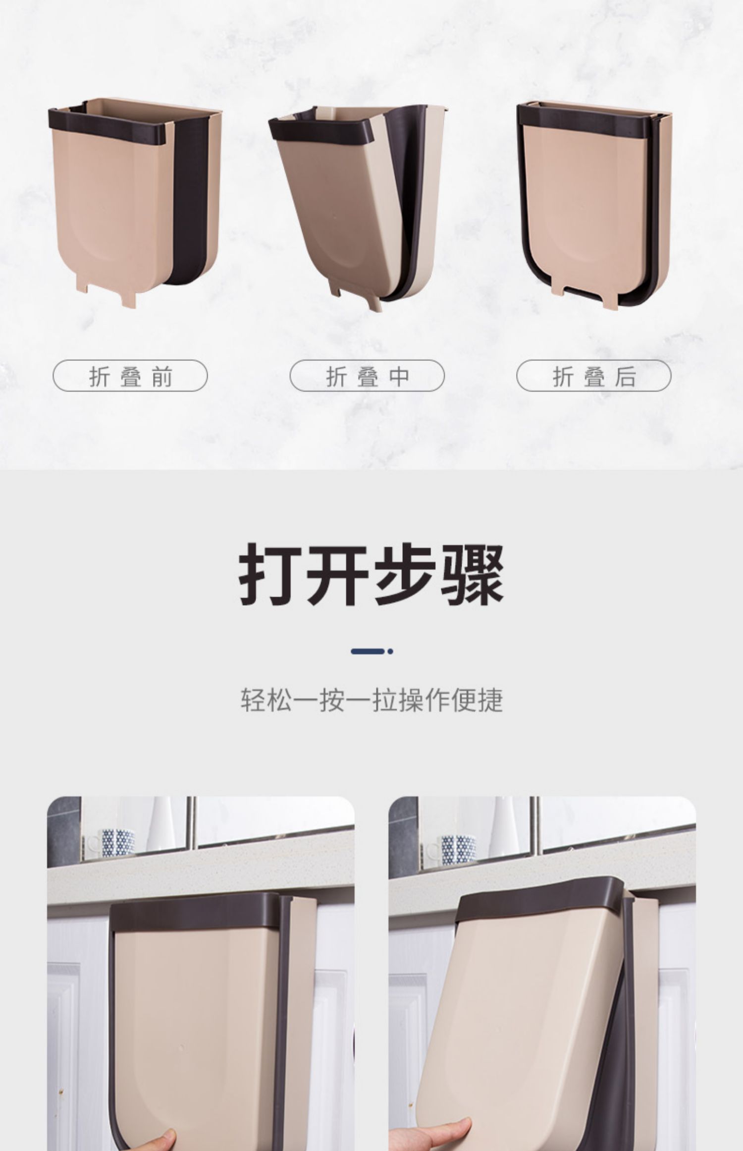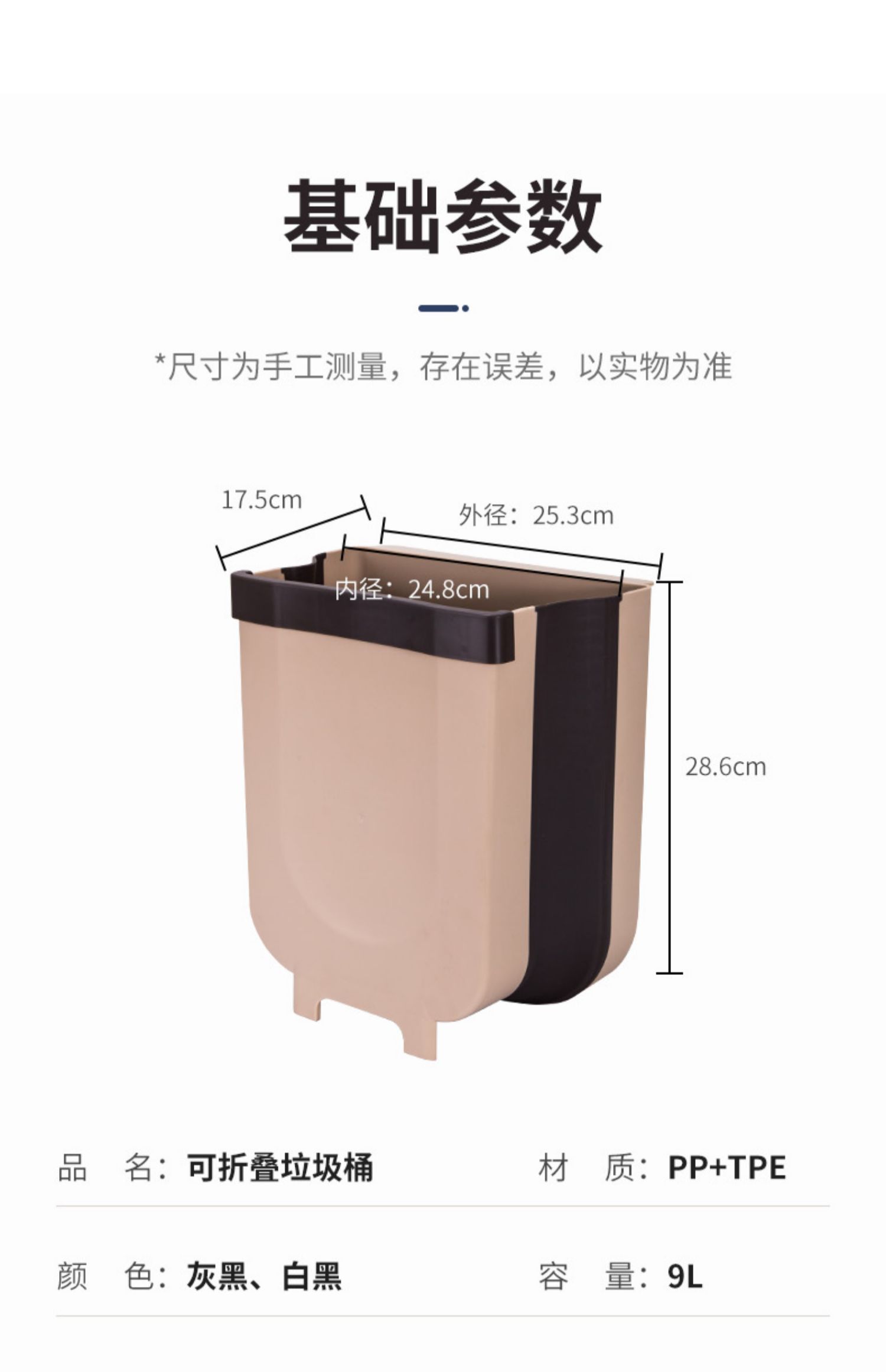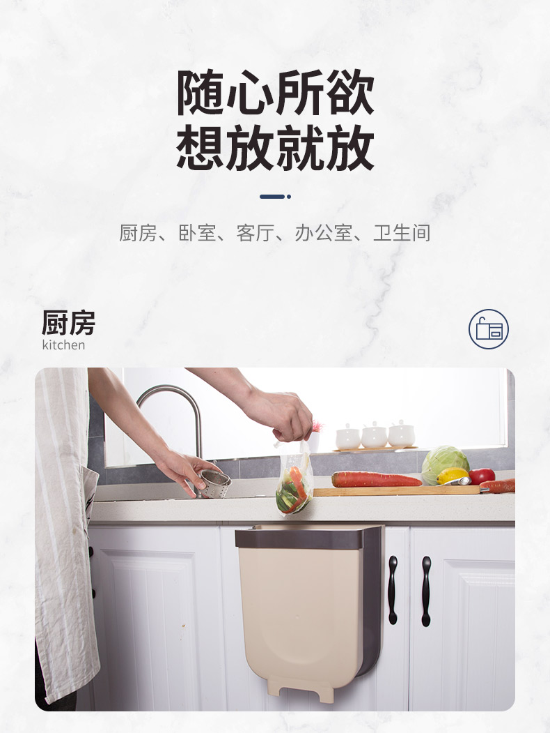 折叠式,省空间,可悬挂,大容量,垃圾随手扔,轻松收纳9L垃圾,干湿分类,PP材质,给家人一个良好的环境~