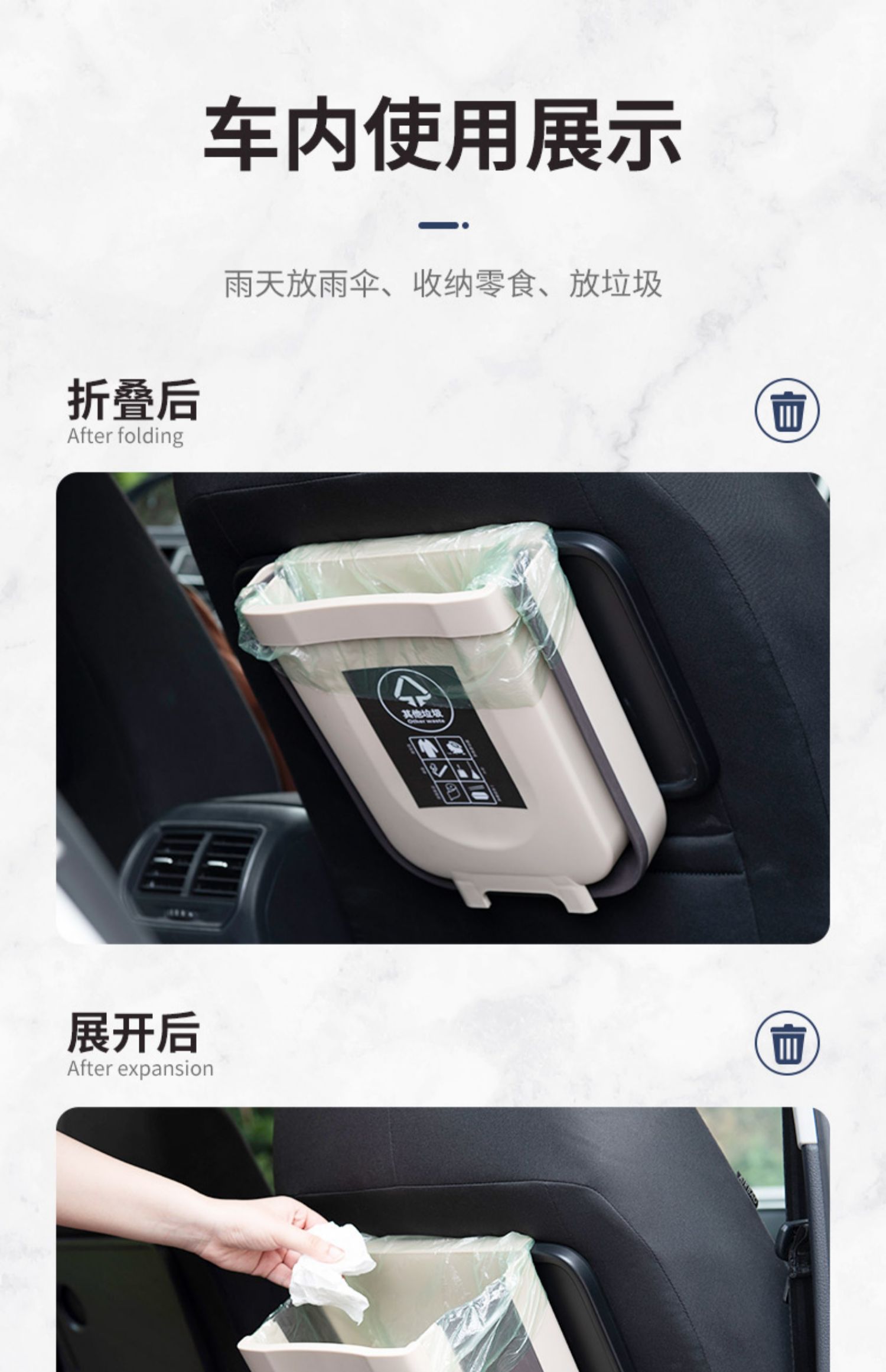 居家厨房车载折叠可悬挂式垃圾桶