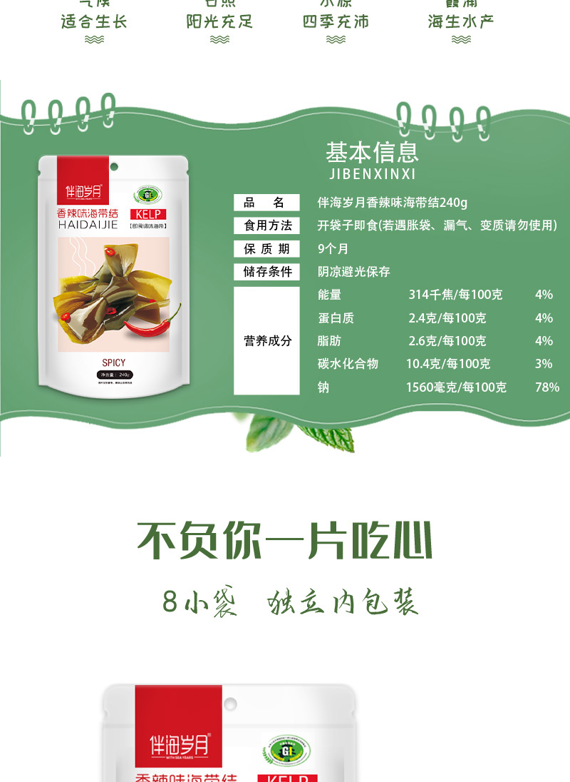 【海带之乡-霞浦出品】240g香辣味海带结,卤门家族即食海带,优选海带中间部位制作,结独立小包装,随吃随拆,色泽浓郁,宽厚肥大,舌尖上的美味,一次解锁鲜,香,辣三个口感。【七天无理由退换】