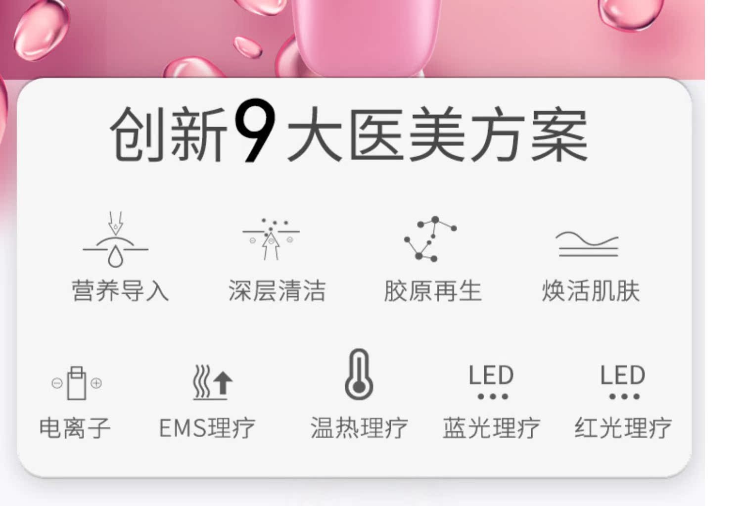 网红爆款美容仪,完整的清洁护肤,EMS提拉,ENI电穿孔导入,深层清洁、光疗嫩肤,温感提拉精华导入辅助吸收、提拉紧致,在家也能做spa!