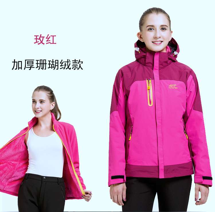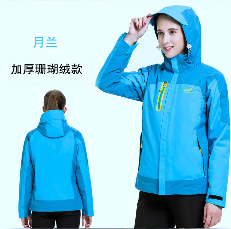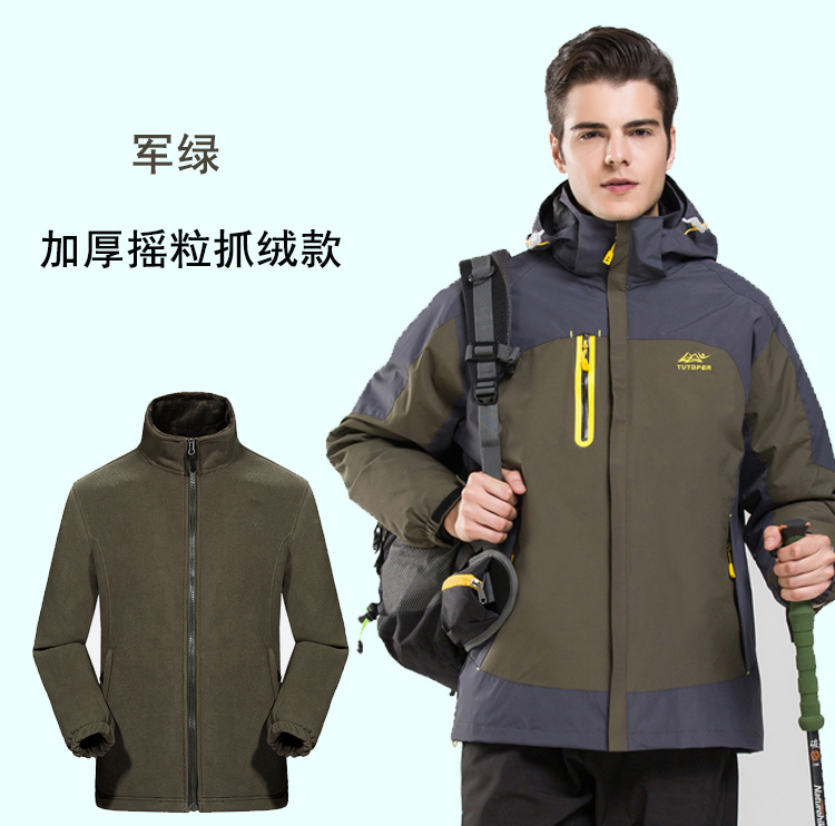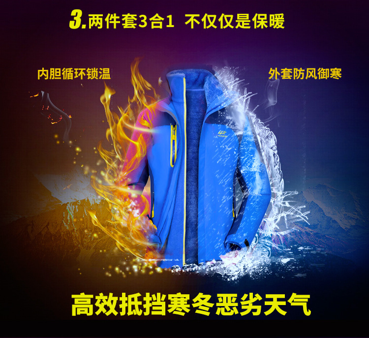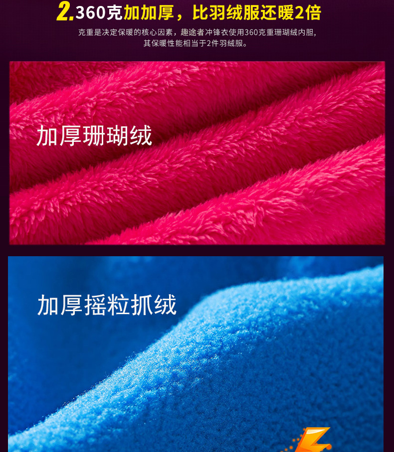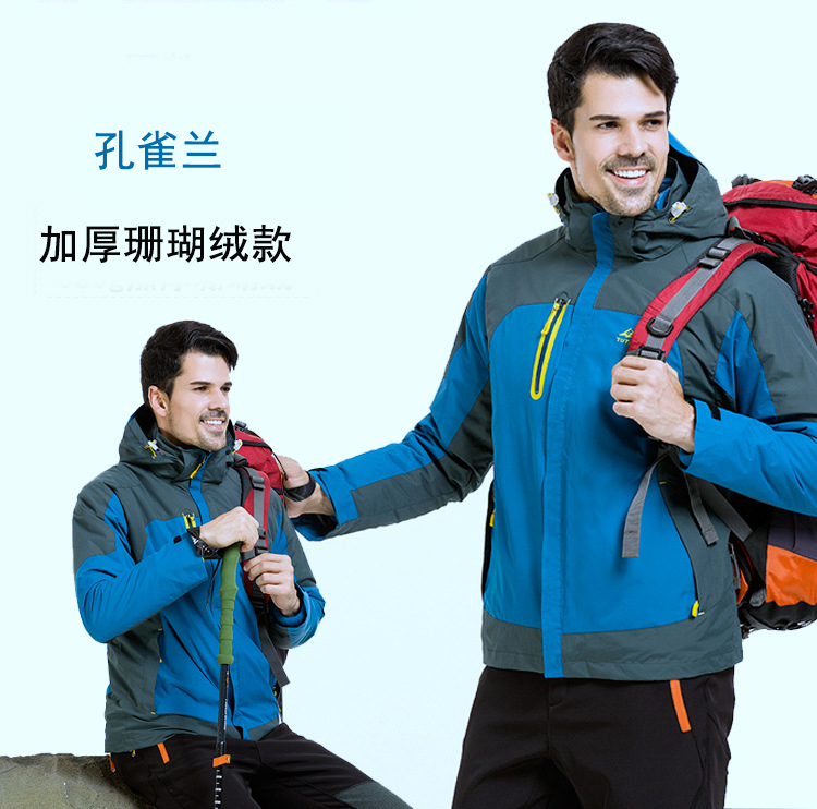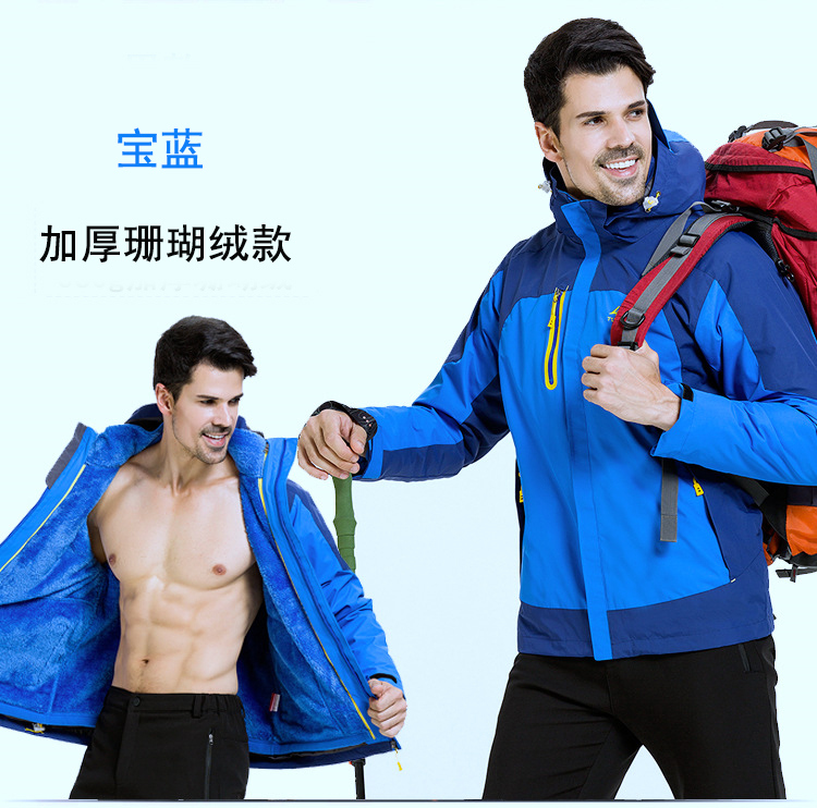 珊瑚绒内胆,360°聚热保暖,松紧袖口,更好防风,可拆卸。让你根据环境自由,变优质面料,防风防水,加厚保暖,整体舒适不厚重,防刮耐磨,抗静电处理,防小雨防风雪,户外感十足【赠运费险】