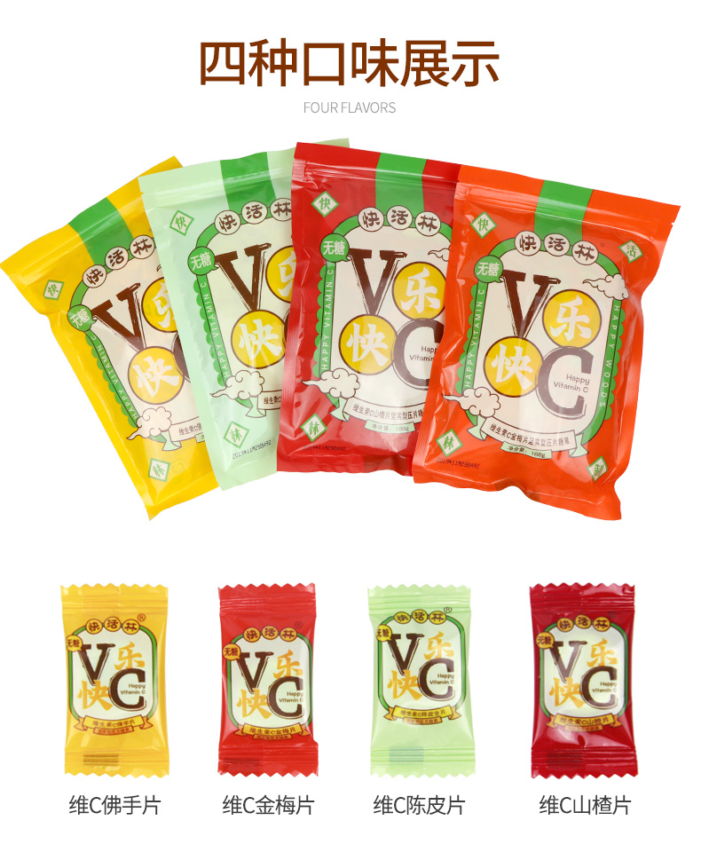 【4个口味可以选,还有混合装哦~】快活林维C陈皮含片糖,清新口气,补充维C,不是很甜的含片,随身携带来一颗,酸甜可口,4种口味,与你相伴,每天从一颗维C含片开始,还是童年记忆中的味道~