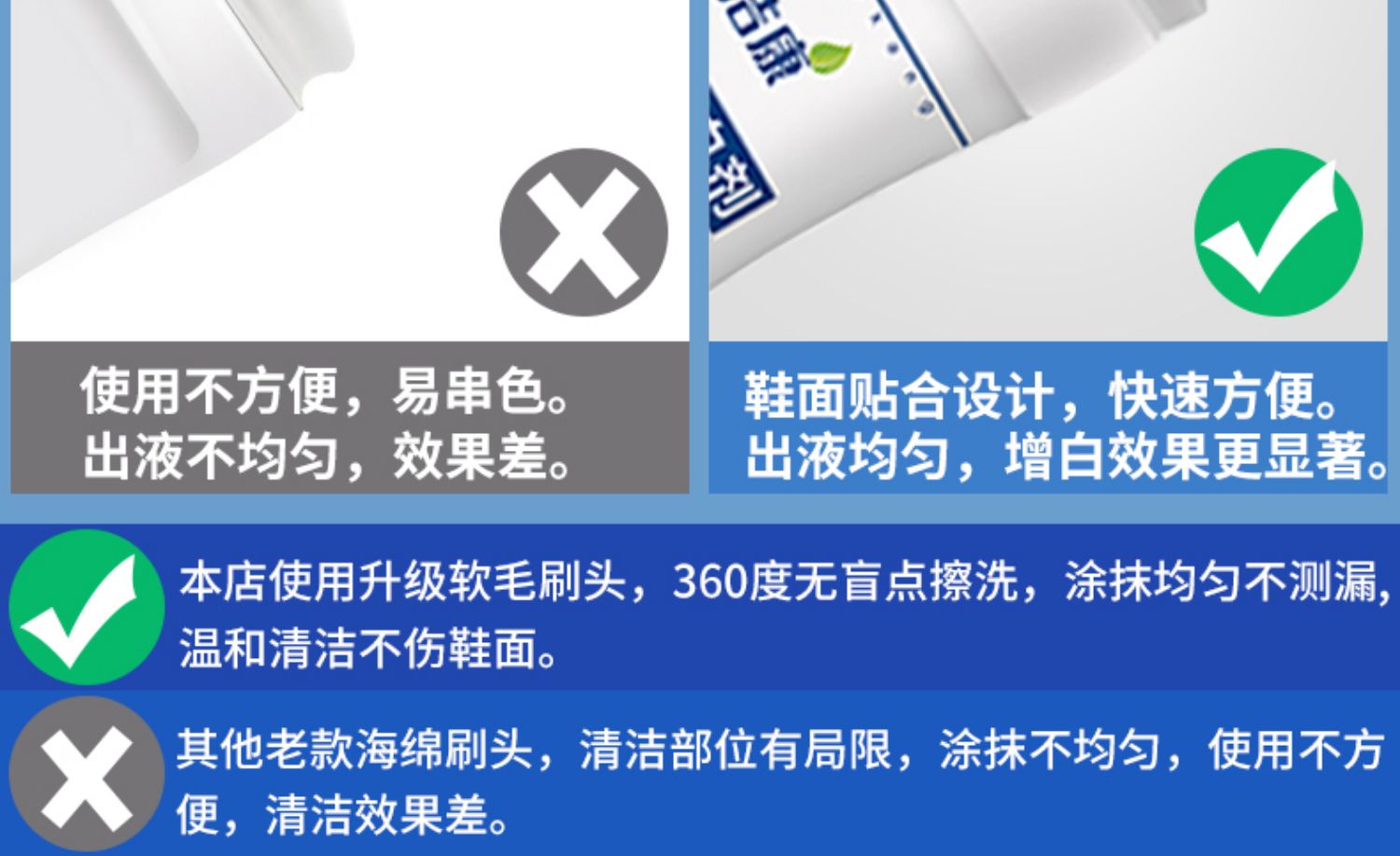 【累计好评40W+】环保配方,高效去污,随时随地,快速清洁,自带刷头,一涂一擦,免水洗,轻松拯救你的小白鞋,每天都是新鞋~