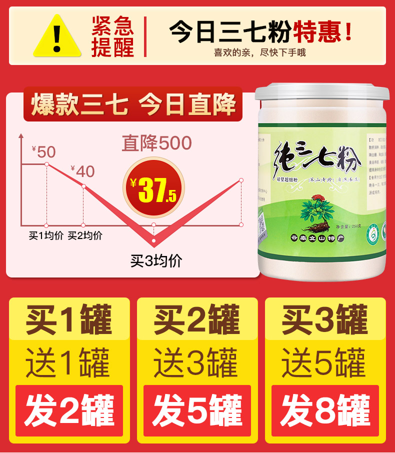 【买一送一】多买多送,地道原产纯正三七,10道工艺,道道用心,一心一意,只做好三七粉,您吃的放心,我们开心。