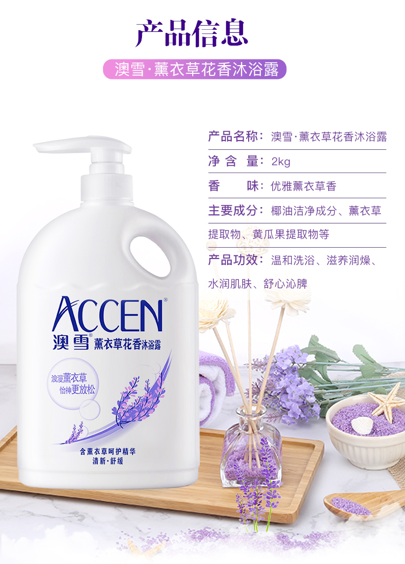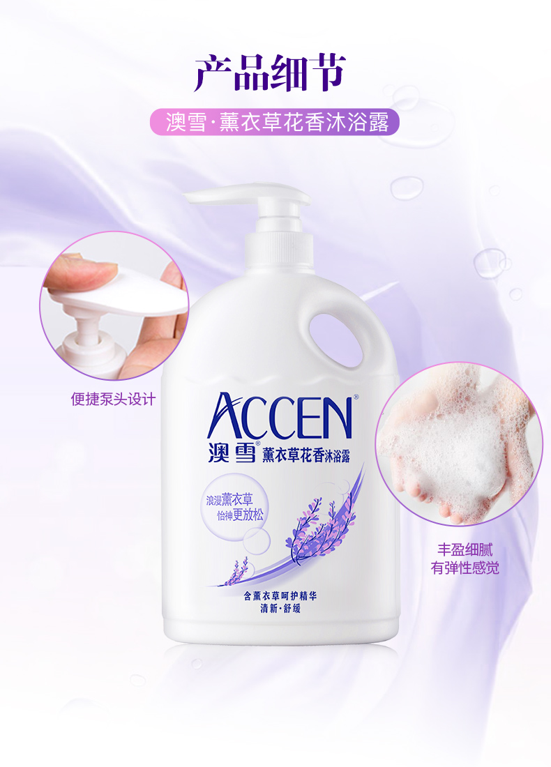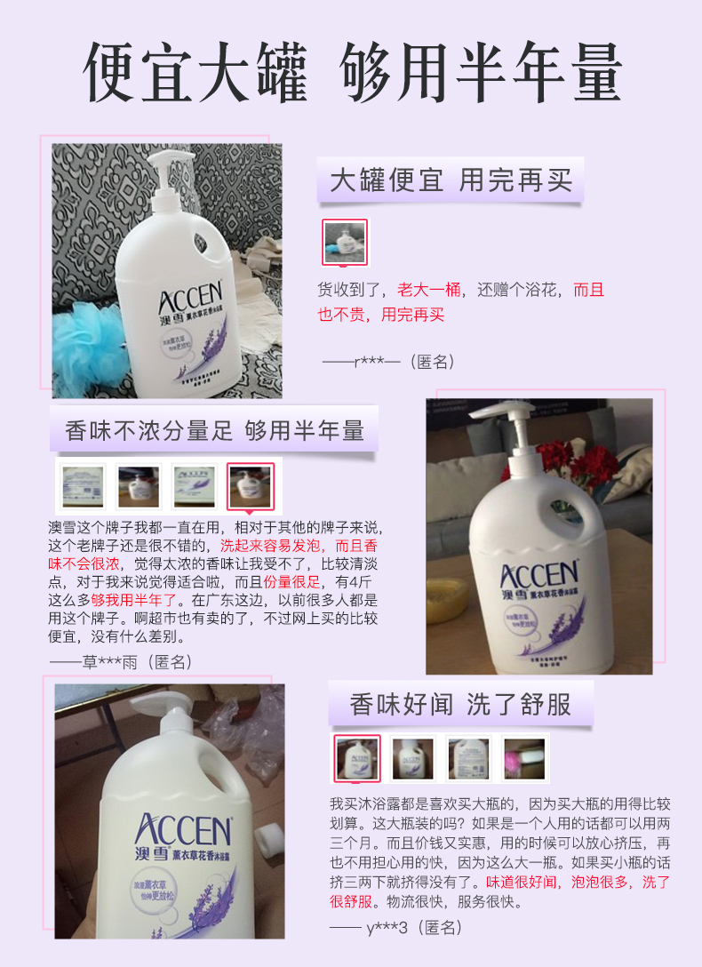 薰衣草花香沐浴露,浪漫的薰衣草香芬,保湿滋润,持久留香,泡沫绵密,好冲洗不腻滑,实惠大瓶装,梦幻薰衣草花香,陪伴呵护家人!