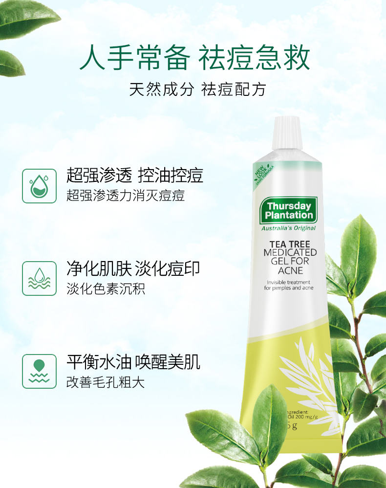 澳洲星期四,农庄茶树祛痘凝胶,澳洲天然茶树精油,去痘疤痘印淡化膏,产品前五强男女士通用!