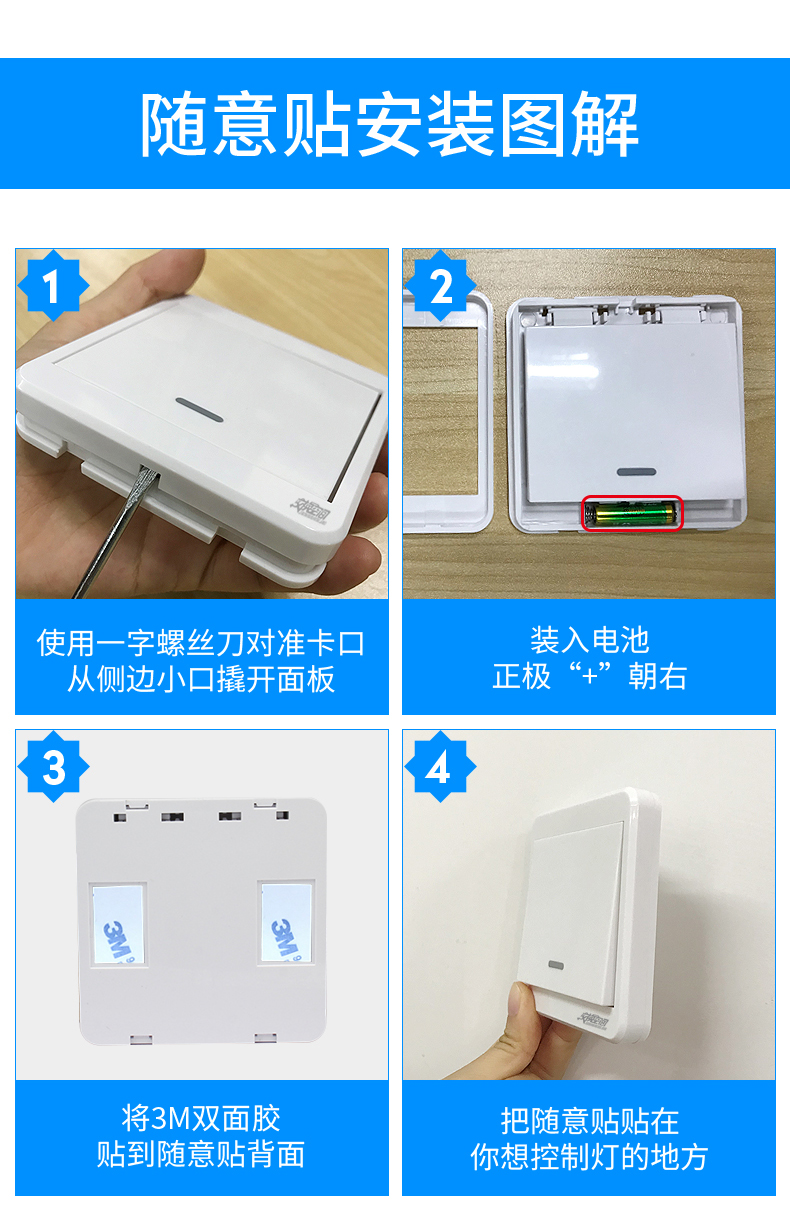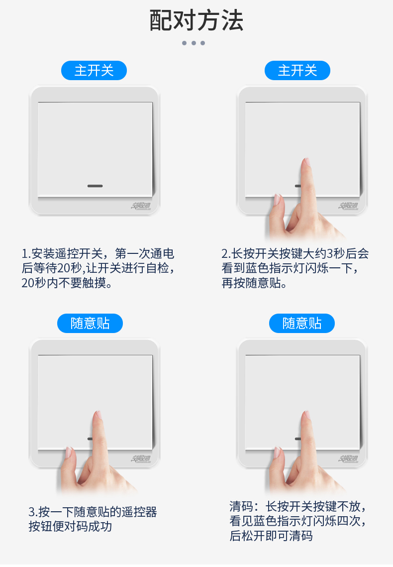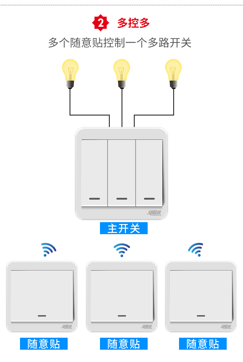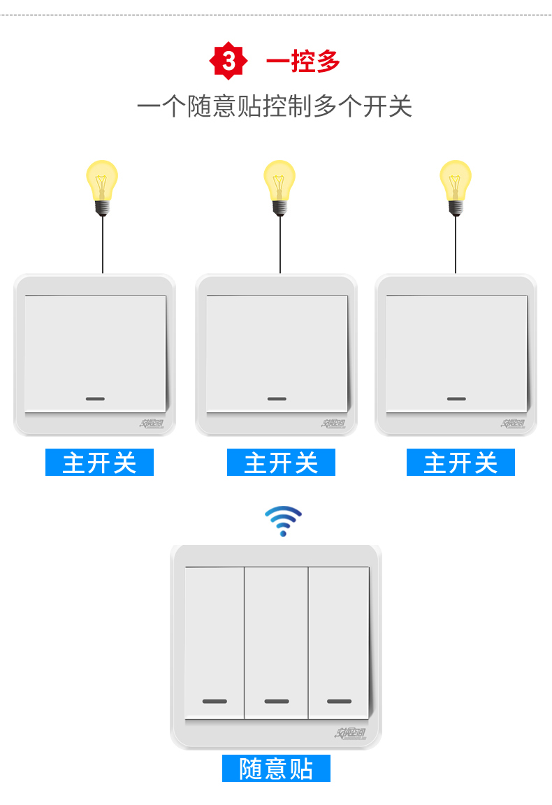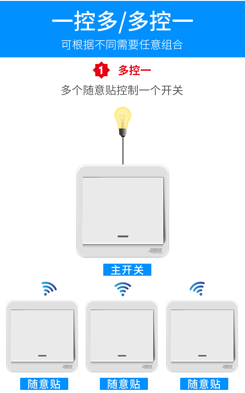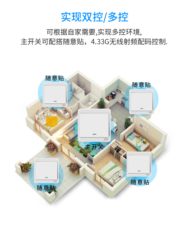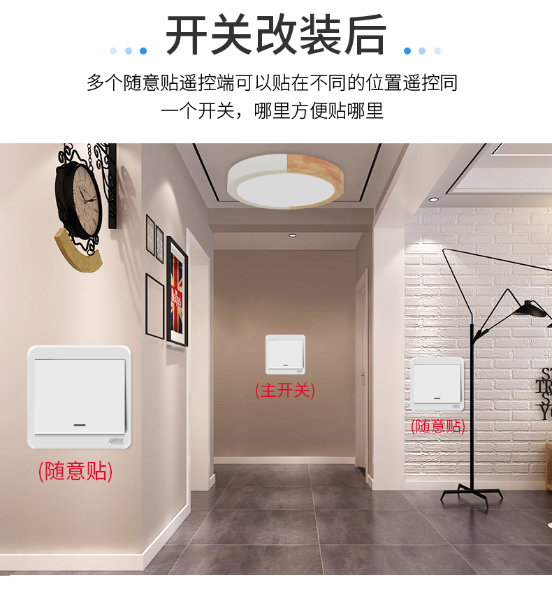 再也不用起身开灯了!免布线随意贴开关,哪里方便贴哪里,无需改线直接替换,支持各种灯光,即点即开,安装简便,单控变多控,智能家居一贴就搞定!