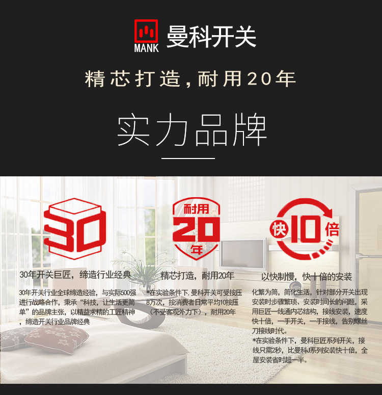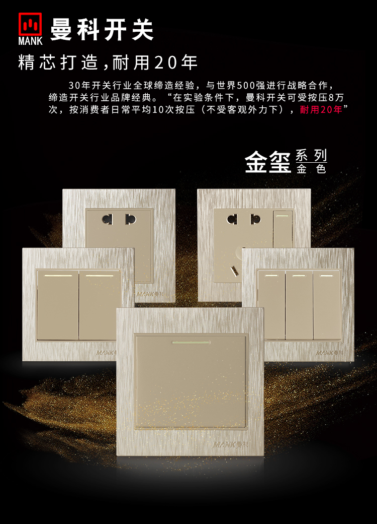 曼科开关,精芯打造耐用20年,3D拉丝触碰时尚,百变家装选曼科!【赠运费险】