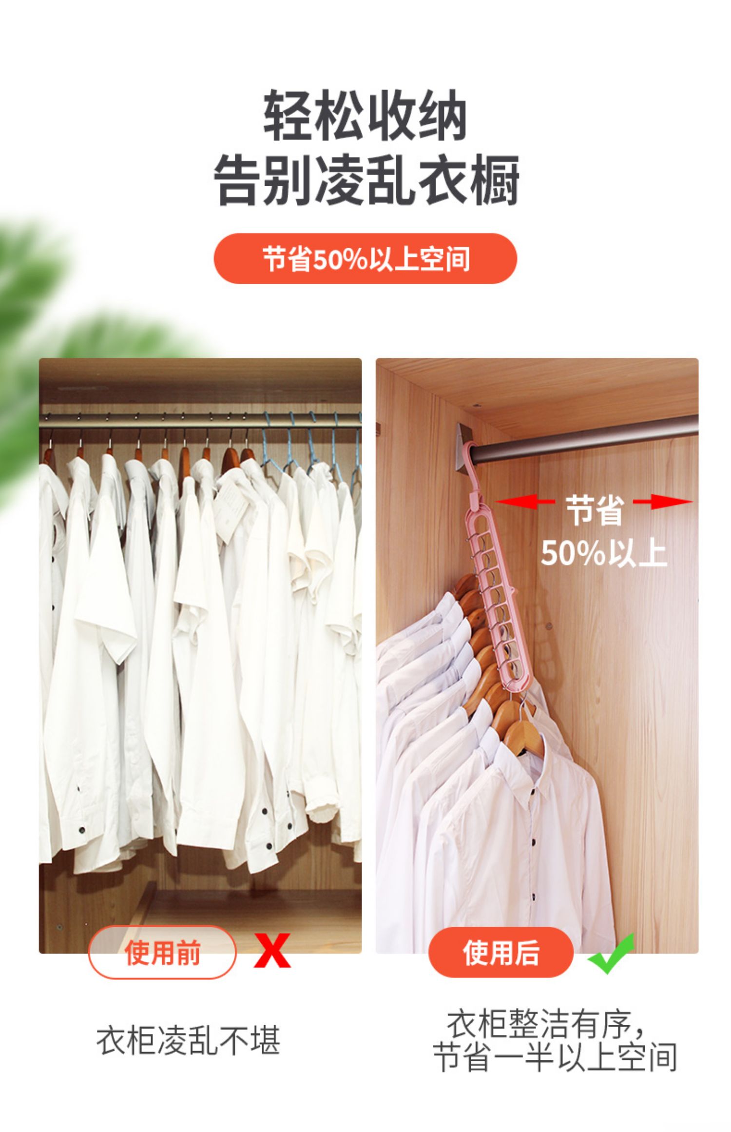【抢!!5.8元!!】火爆抖音的可旋转魔术衣架,多层收纳,告别凌乱,横竖两用,一个挂9件!更节省空间,厚实PP材质,承载力强,家居必备好帮手!马卡龙色系随心选~