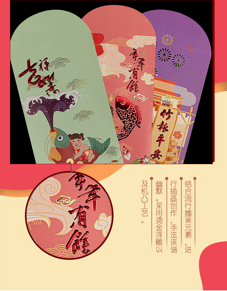 【年货必备】高档年画风格创意新年红包,经典中国元素,时尚个性设计,翻盖式设计,抽拿方便,高端铜版纸印刷,带给你不一样的新年惊喜.