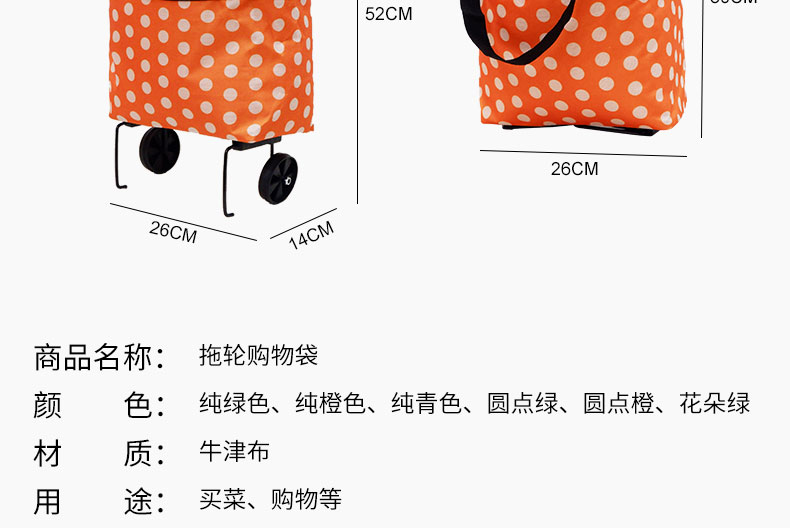 网红爆款折叠购物袋,牛津布环保材质,方便携带,容量大,不占位置,车轮拖拉更省力,多功能用途,无论买菜购物等等都超实用【赠运费险】