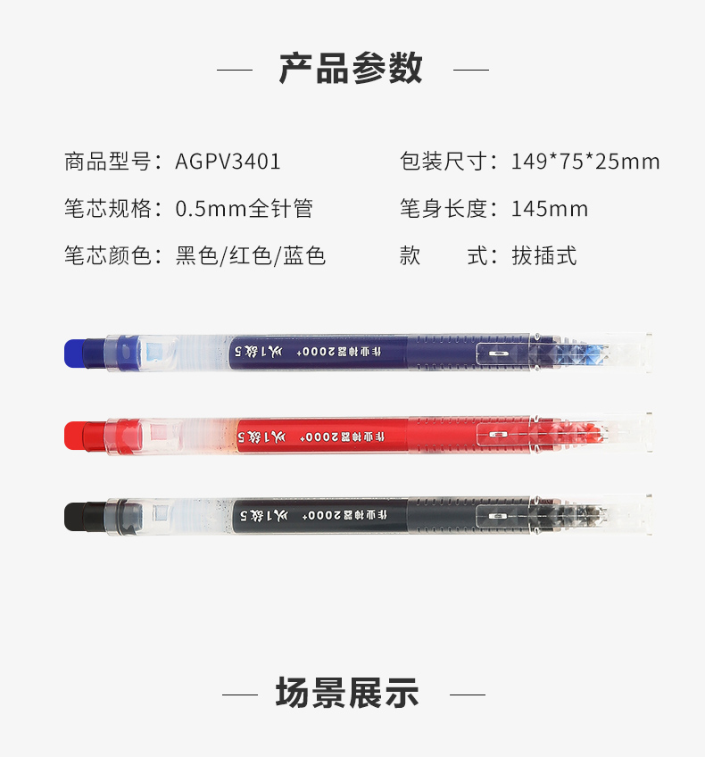 【晨光官方旗舰店】晨光大容量一体式全针管签字笔,5倍书写时长,之注式储墨,单支笔重量轻,使用轻盈不压手。