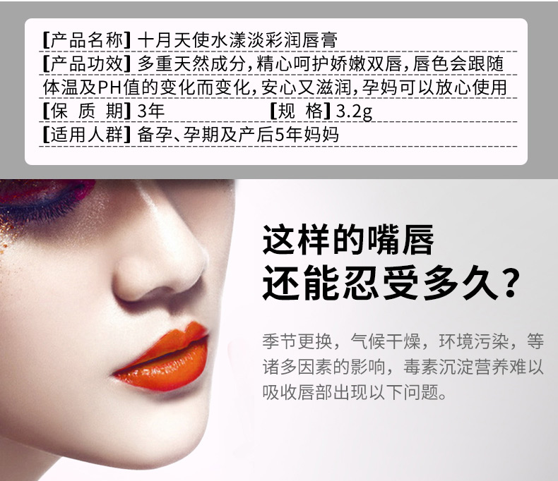 【十月天使官方店】孕妇淡彩滋养修护天然唇膏,天然持久,植物精粹,孕妇化妆品精品设计,一抹奢润丝滑,点亮闪耀孕颜,成熟优雅,无荧光剂,不含石蜡,无激素【赠运费险】速抢!~