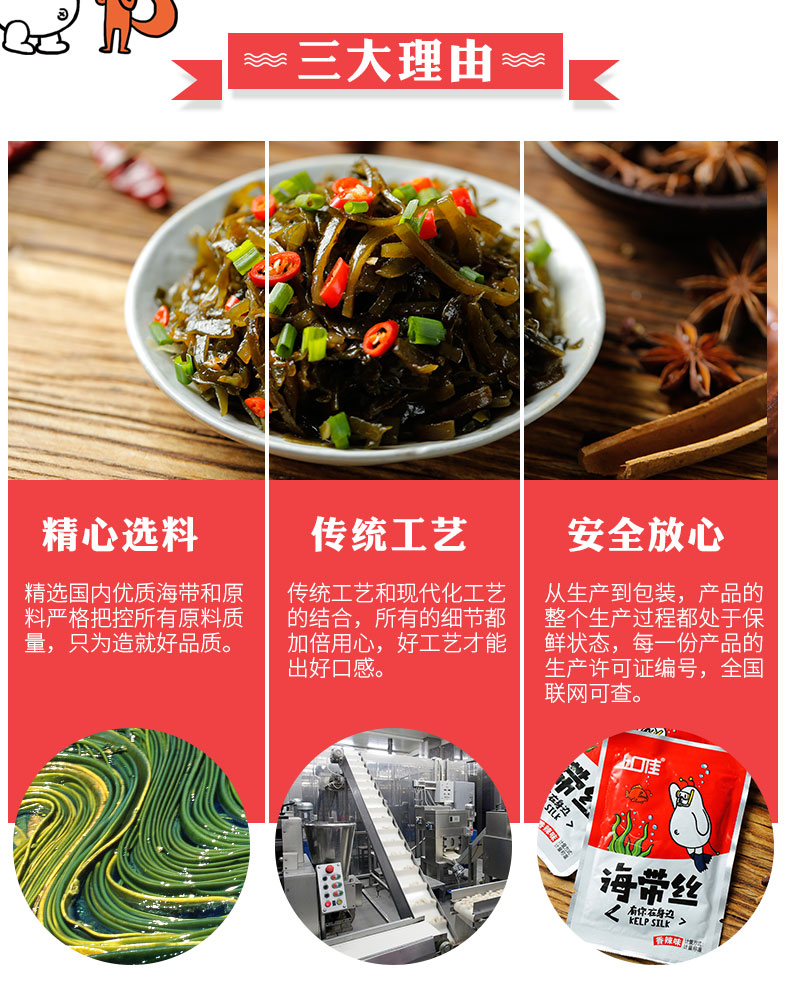 烘干海带丝,盐渍无防腐剂,非常干易储存清水泡发后即可烹调食用,幼嫩,爽脆,味道鲜!