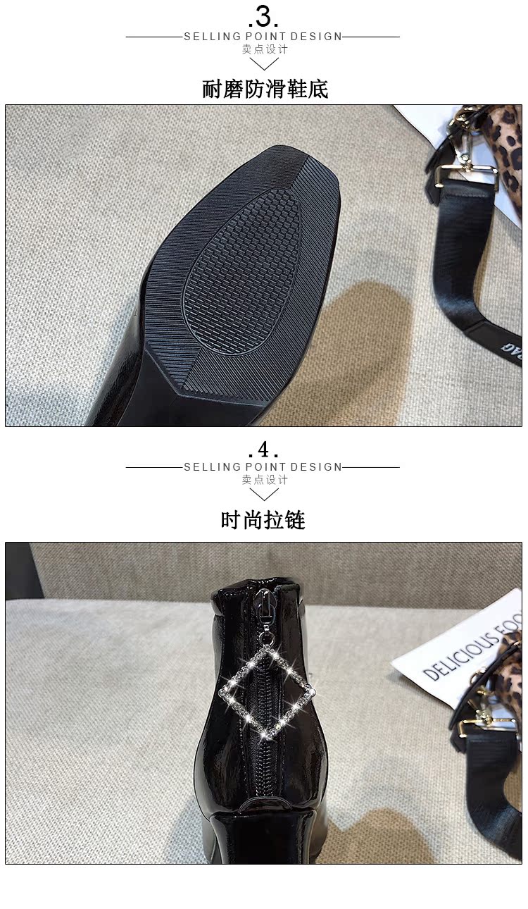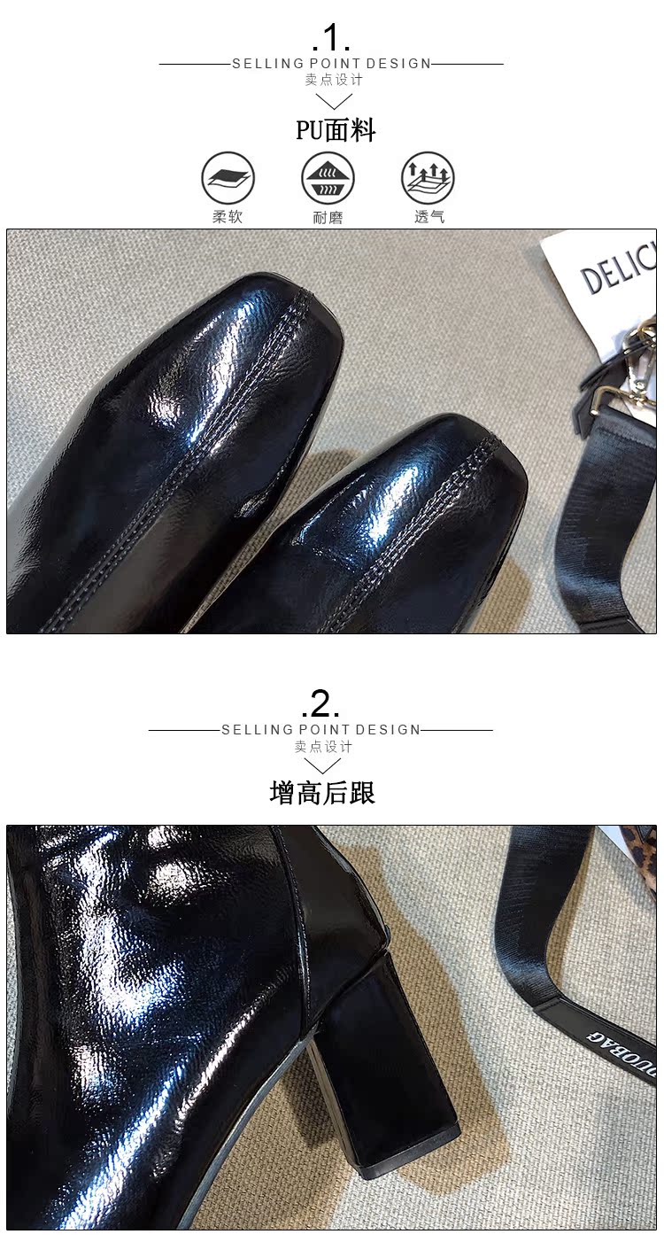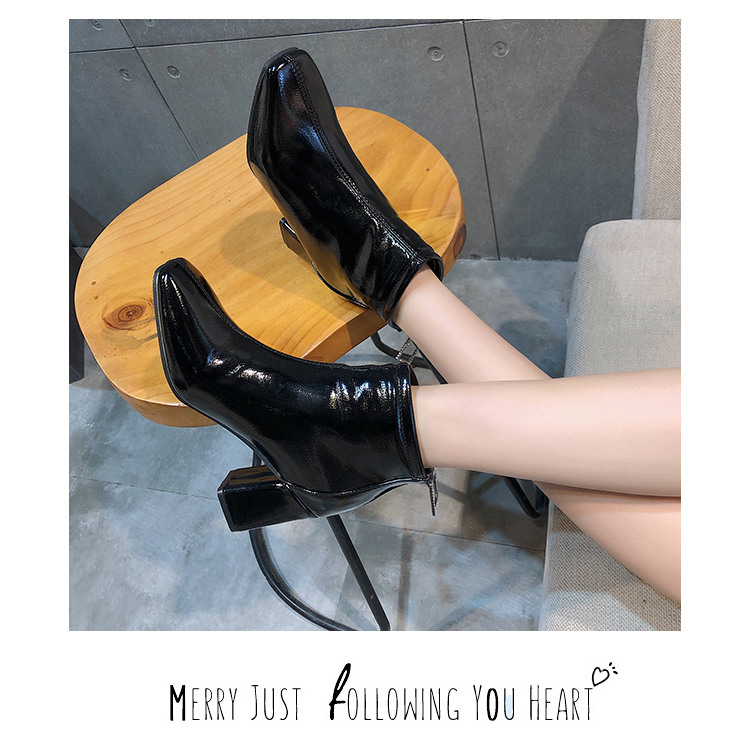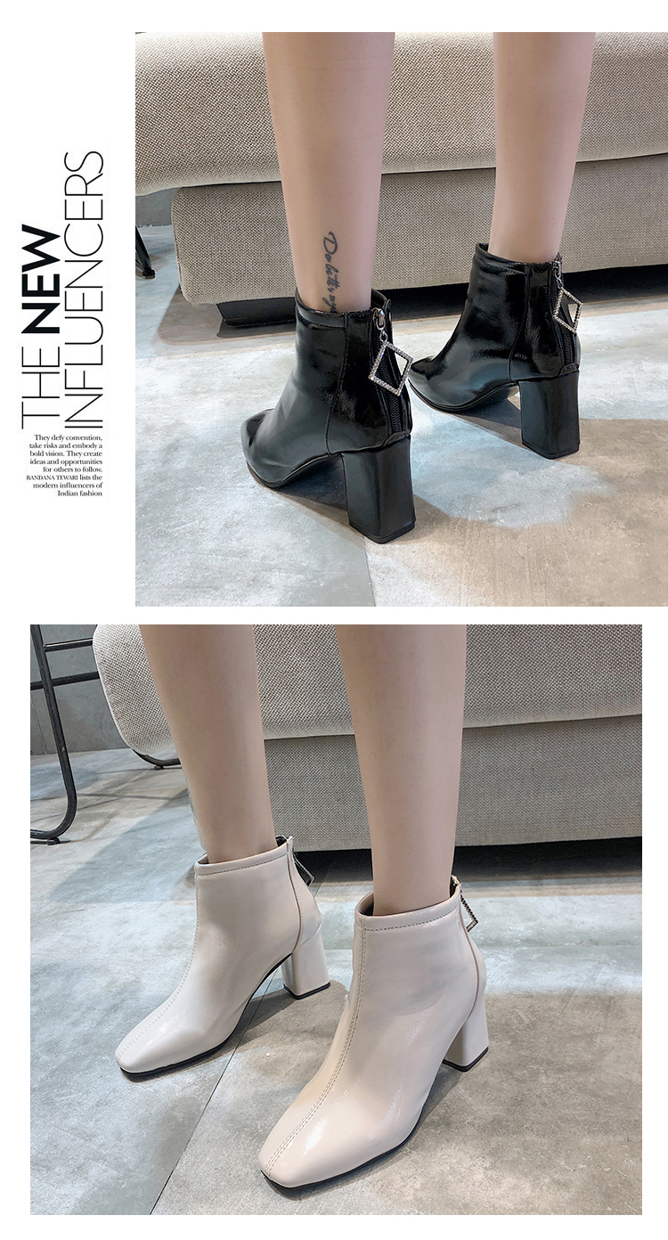 方头靴子女杏色短靴秋2019新款冬粗跟