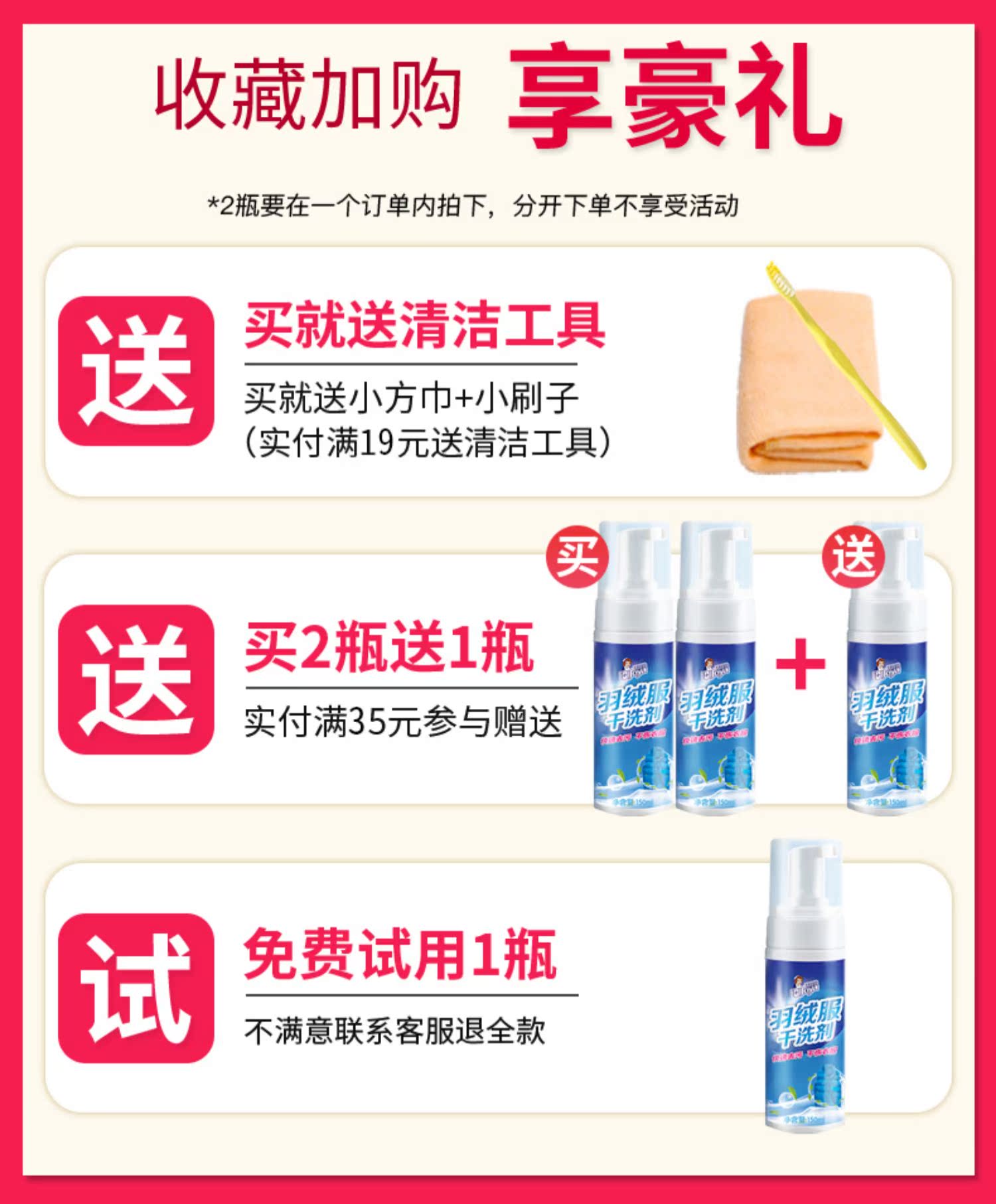 【爆款品牌】定制款羽绒服干洗剂,免手洗更方便,免水干洗,泡沫清洁,轻松去污,一喷一擦,立刻干净如新,不伤衣物,清洁不留痕,冬季衣物清洁好帮手~