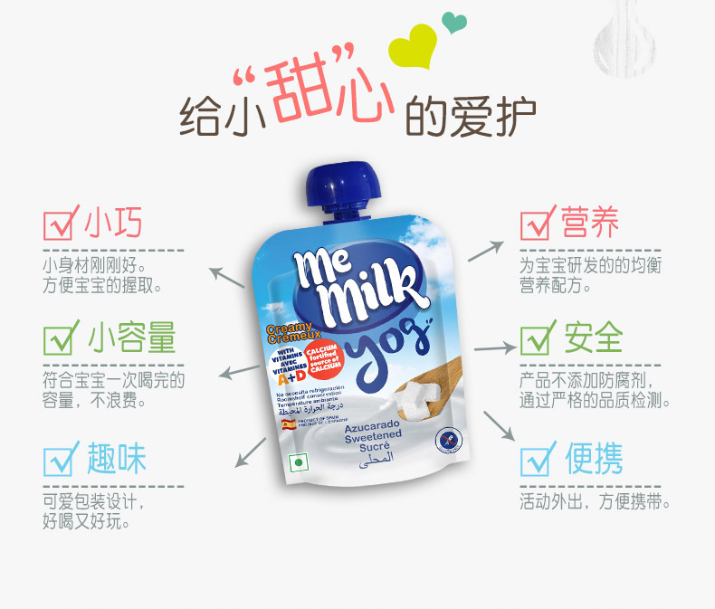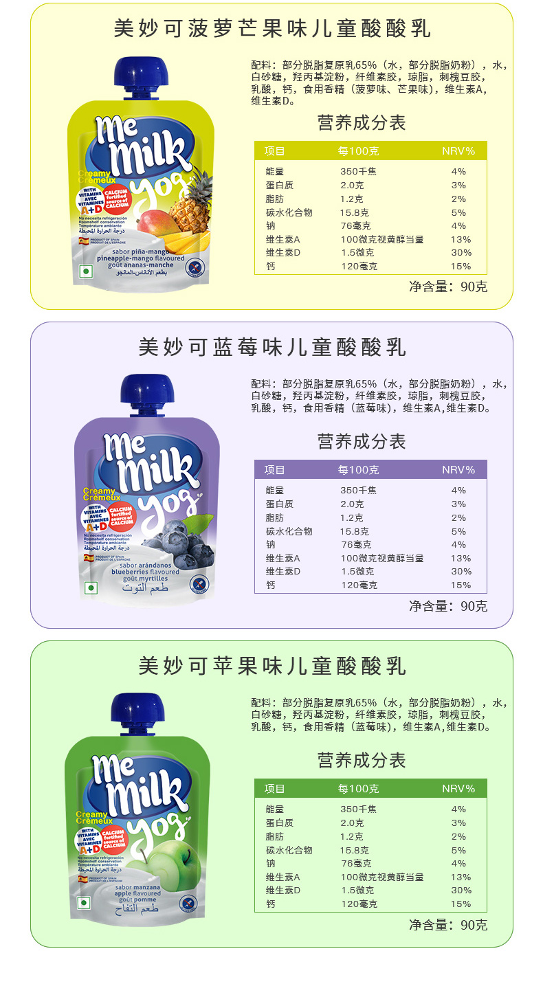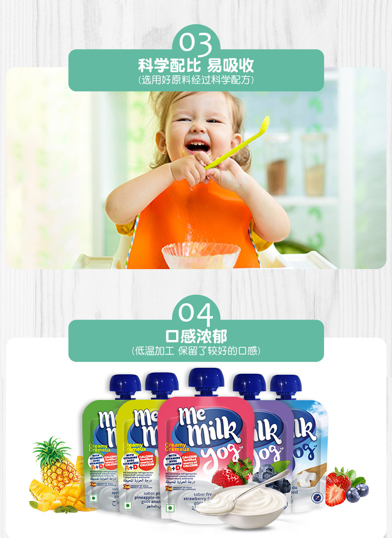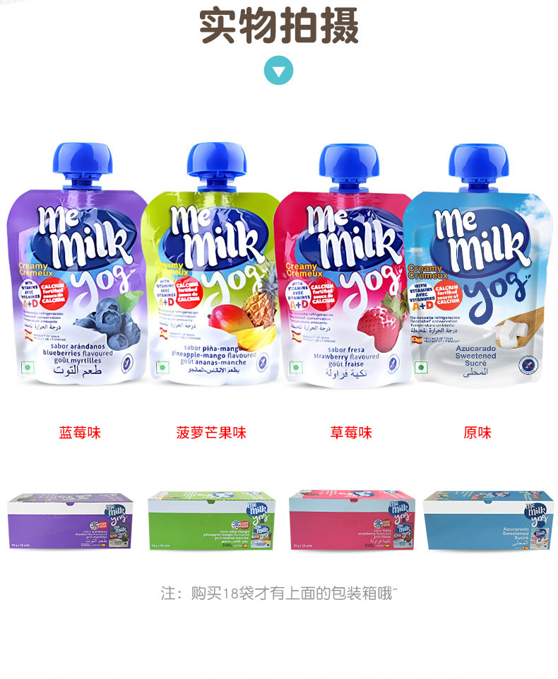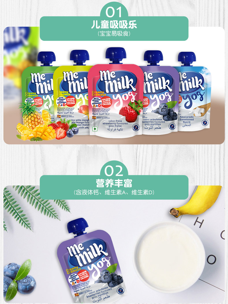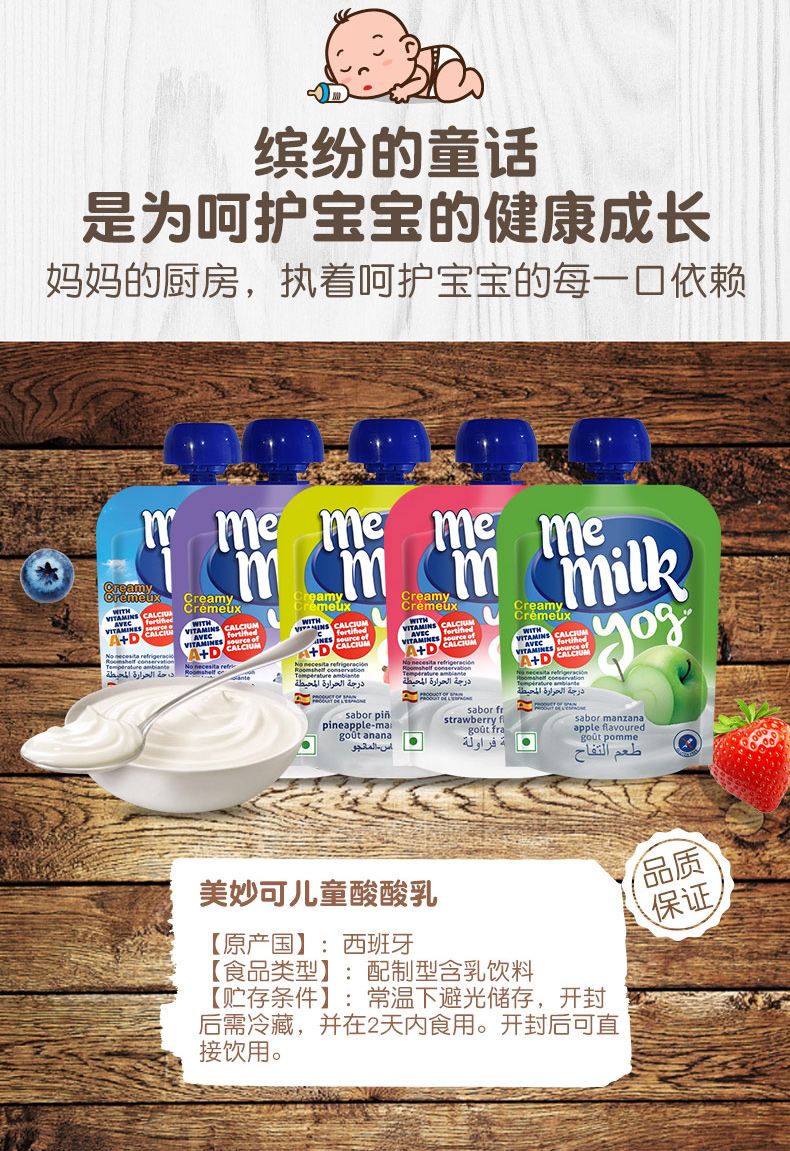 来自西班牙的贵族酸酸乳,健康宝宝新营养,可以搭配水果,面包等等,适合多种场景的搭配。DIY美食,宝宝爱吃,妈妈放心。开盖即食,方便携带。【5袋装】好吃再来呀~~
