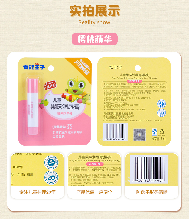 【三种果味】水果精华+维生素,天然蜂蜡,全是食品级原料,清爽不油腻,预防干燥,大人小孩都可以用!