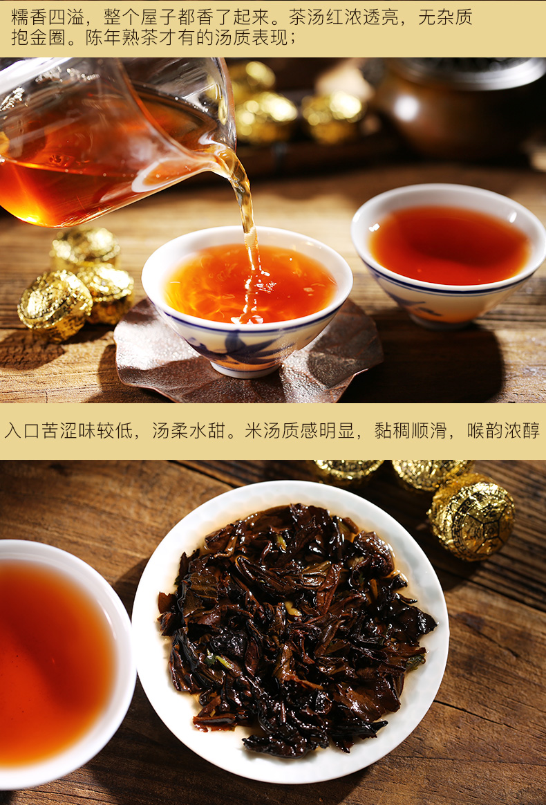 叶底粗壮,肥厚油亮,呈猪肝色,此茶经久耐泡,十泡之后,叶底仍散发着陈香,超值一斤装。