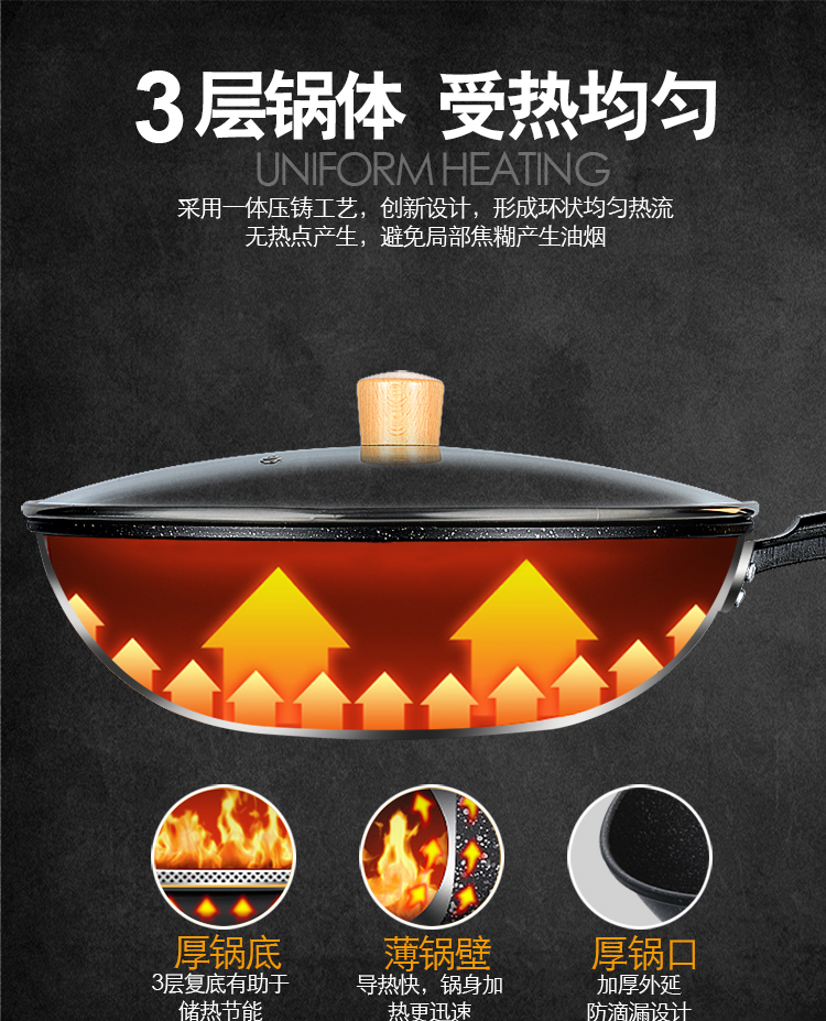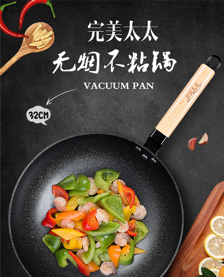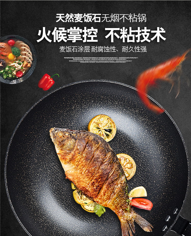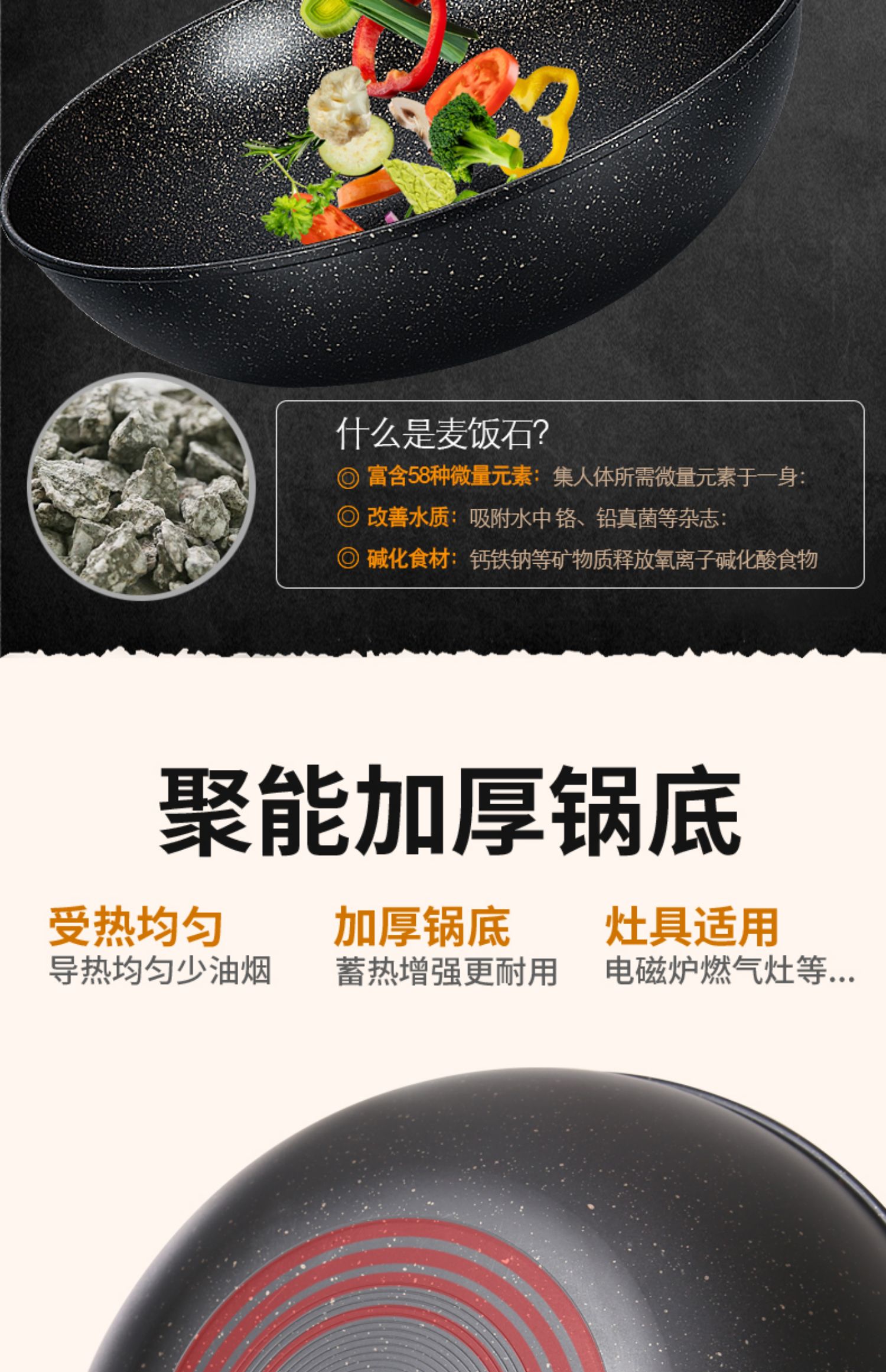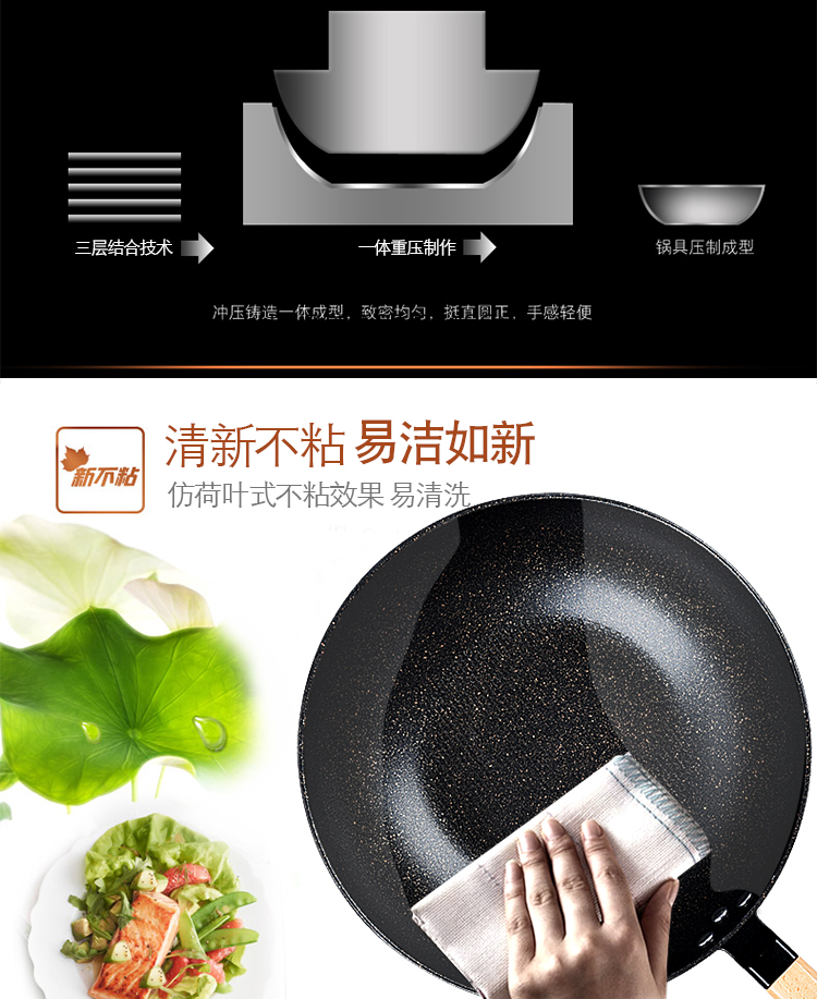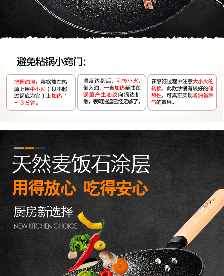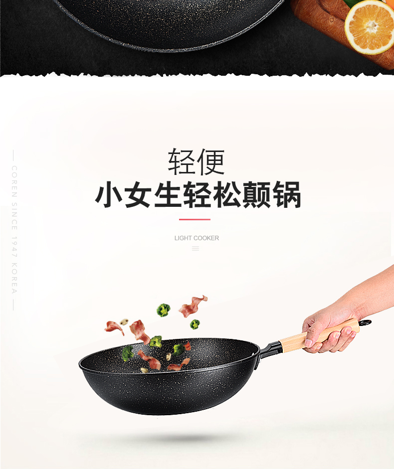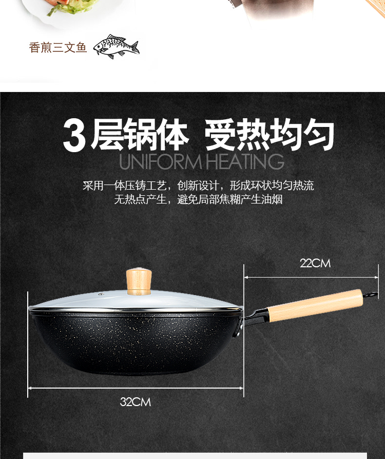 【送木铲】无烟不粘炒锅,轻松烹饪,电磁炉天然气通用,导油口设计省油+省电+省水,享受小资生活,也是居家好帮手【赠运险费】