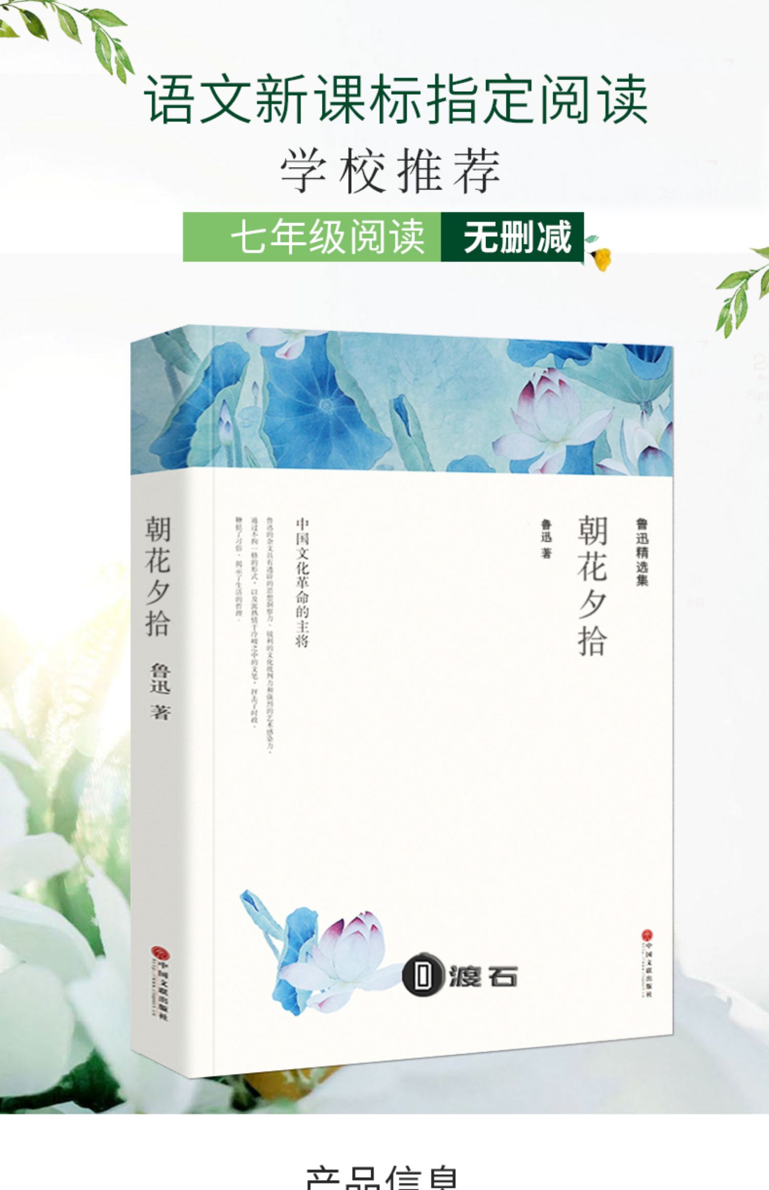 学校老师推荐书籍,朝花夕拾鲁迅正版原著,全本无删减,纸张印刷清晰,图文并茂。学校指定七年级课外读物,排版舒适,字迹清晰,愉悦的阅读体验从此刻开始