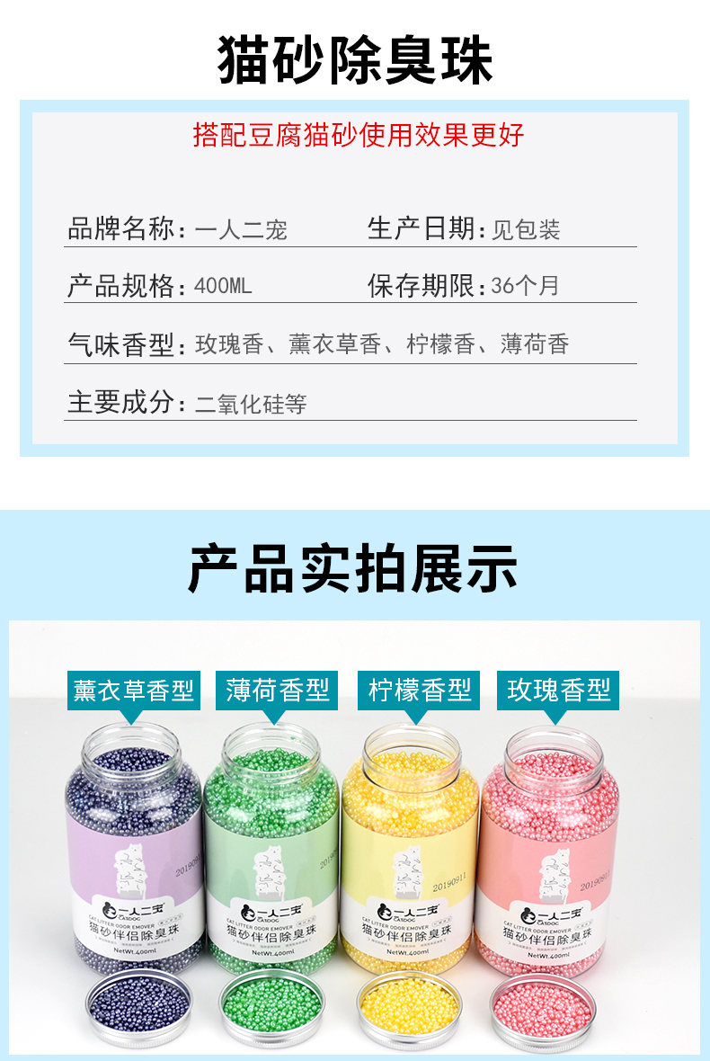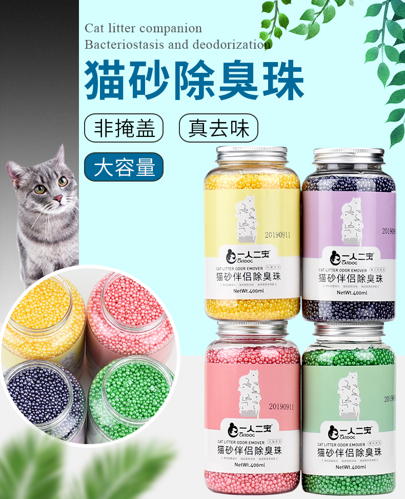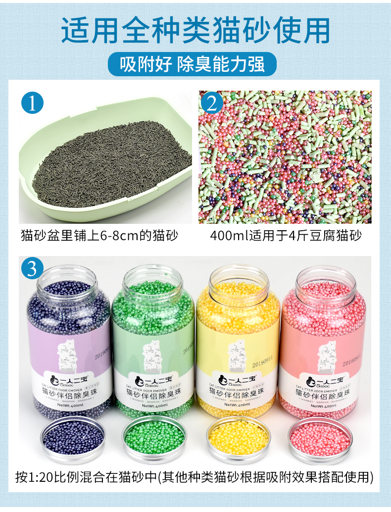 【官方旗舰店】新包装大罐装,1罐顶老包装2罐,猫砂除臭珠,猫砂伴侣,强效吸收,分解异味,清新空气,抑菌除臭,告别异味环境。
