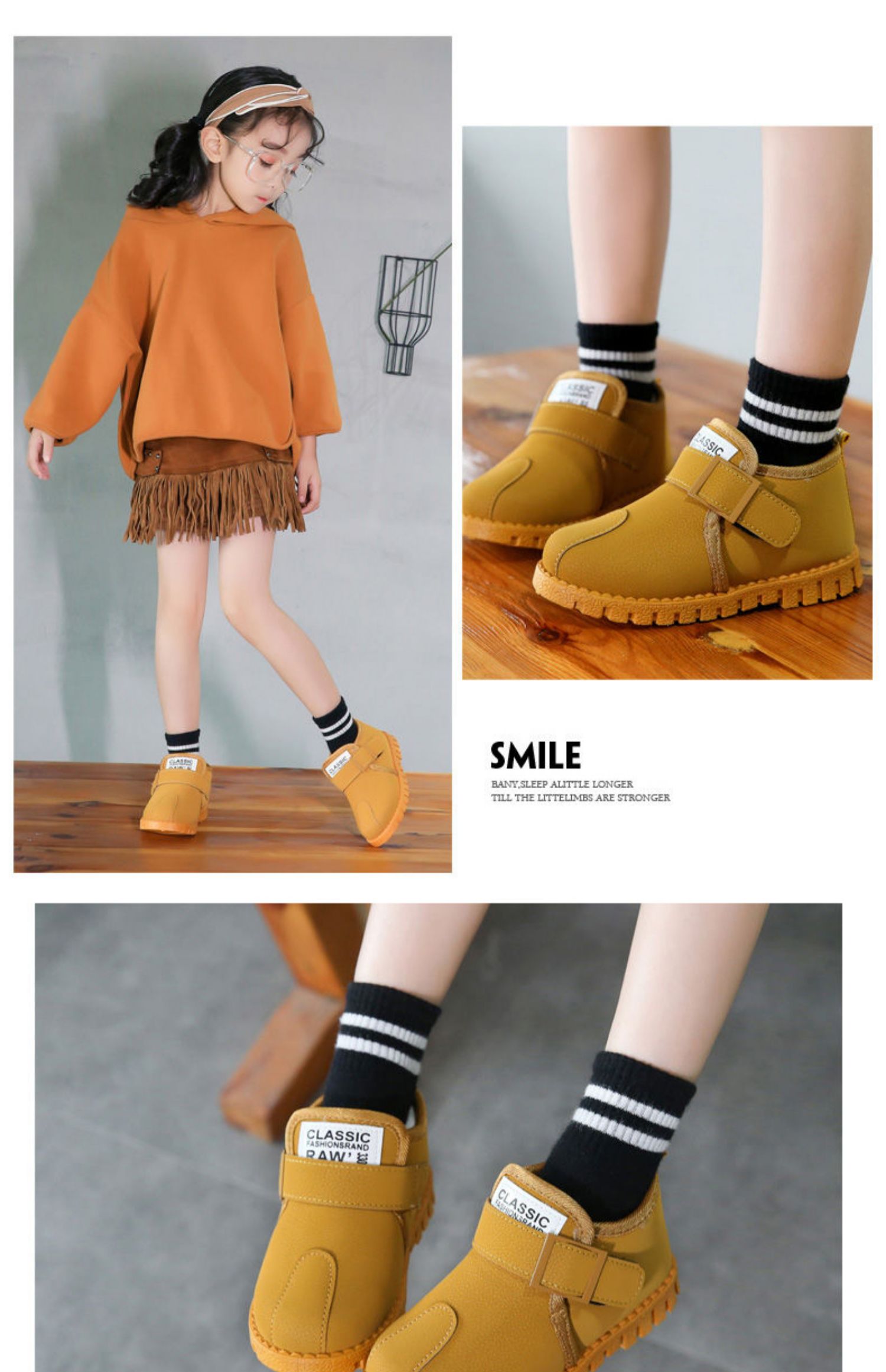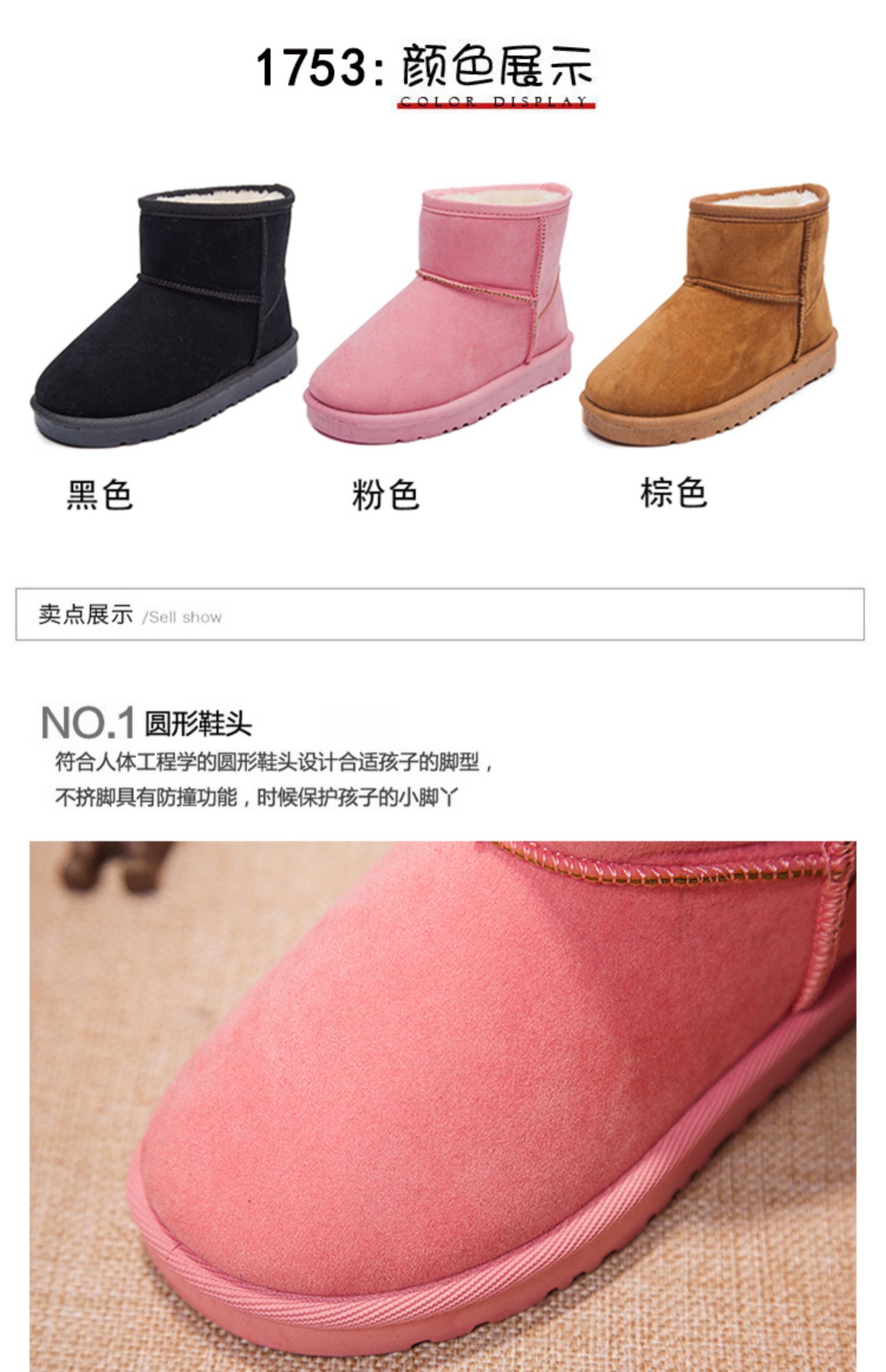时尚儿童保暖雪地靴,绒毛内里,超级保暖!再也不用担心孩子冬天会冻脚!牛皮鞋面,魔术贴设计,宝宝穿脱方便!