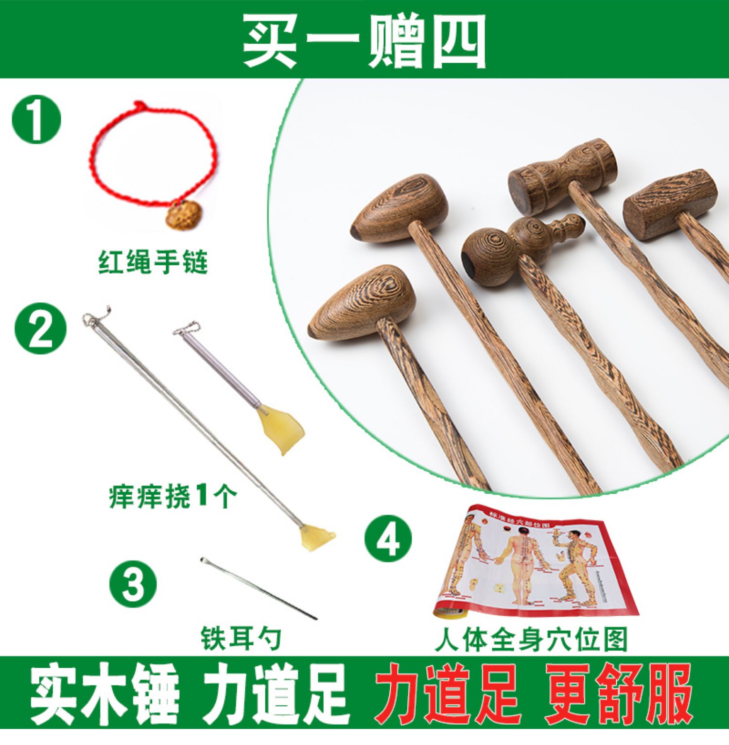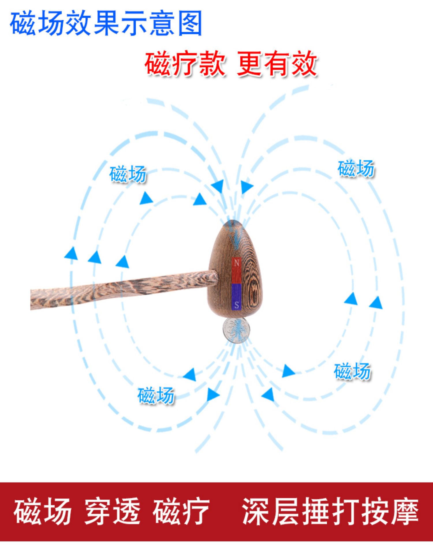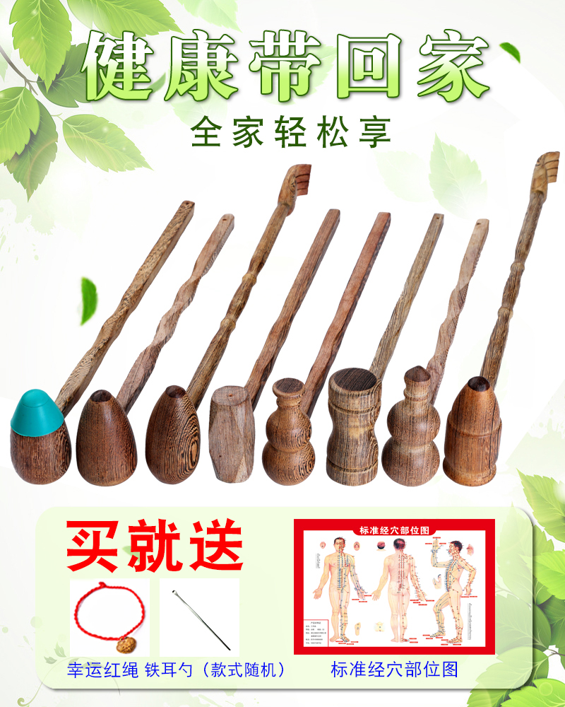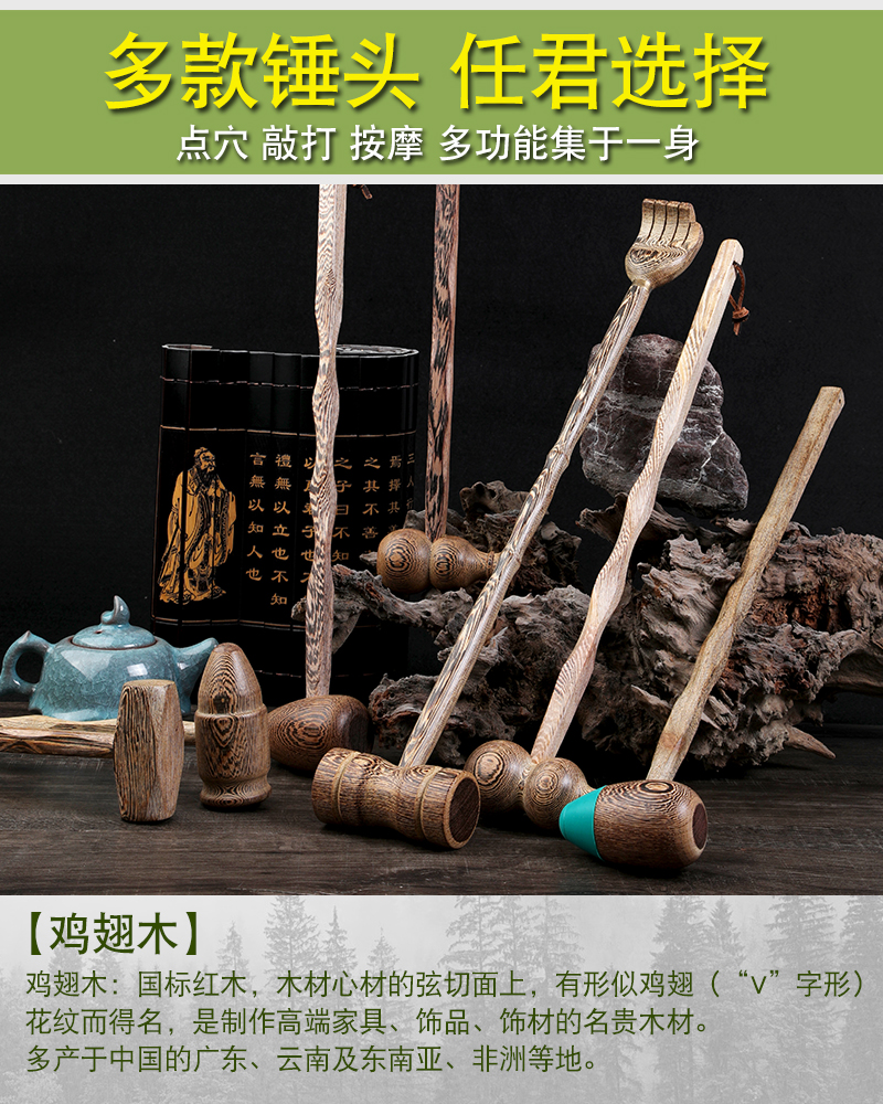 【买就送穴位图+幸运红绳+牛皮绳】鸡翅木质按摩锤,采用天然红木,内置磁铁,深层穿透磁疗,点穴,敲打,按摩,好帮手!