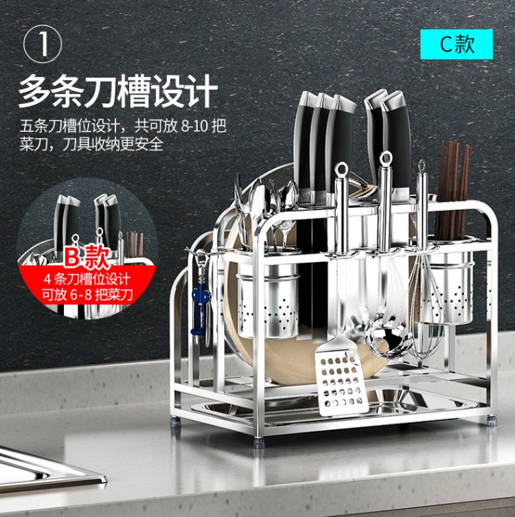 【居家必备】多功能收纳置物架、刀具、餐具轻松收纳,不占空间,筷子刀叉易摆放,底部多个沥水孔,沥水快干,厨房,都来囤货吧!【赠运费险】
