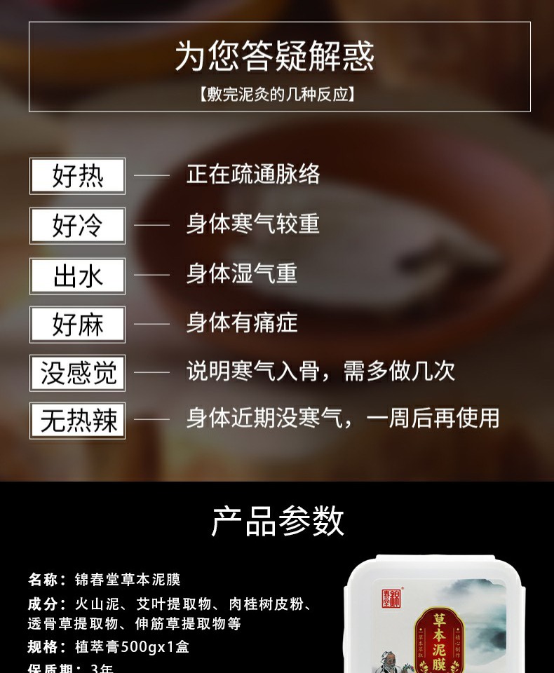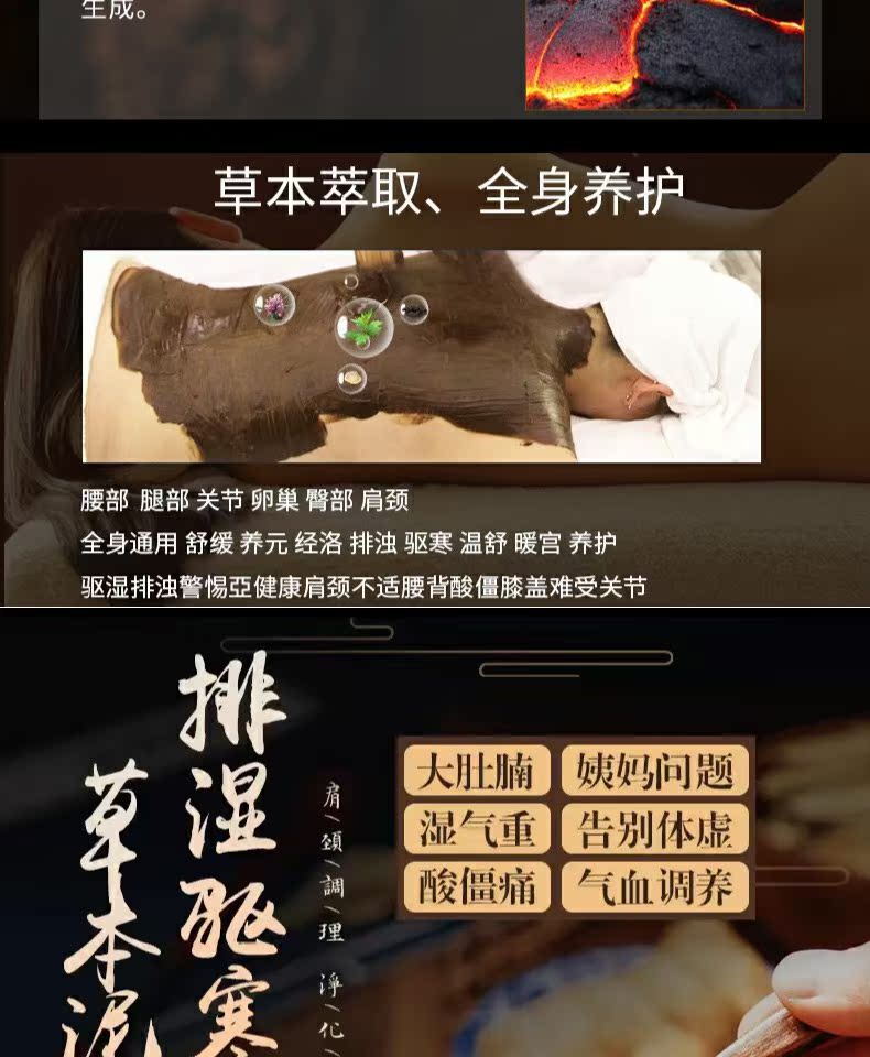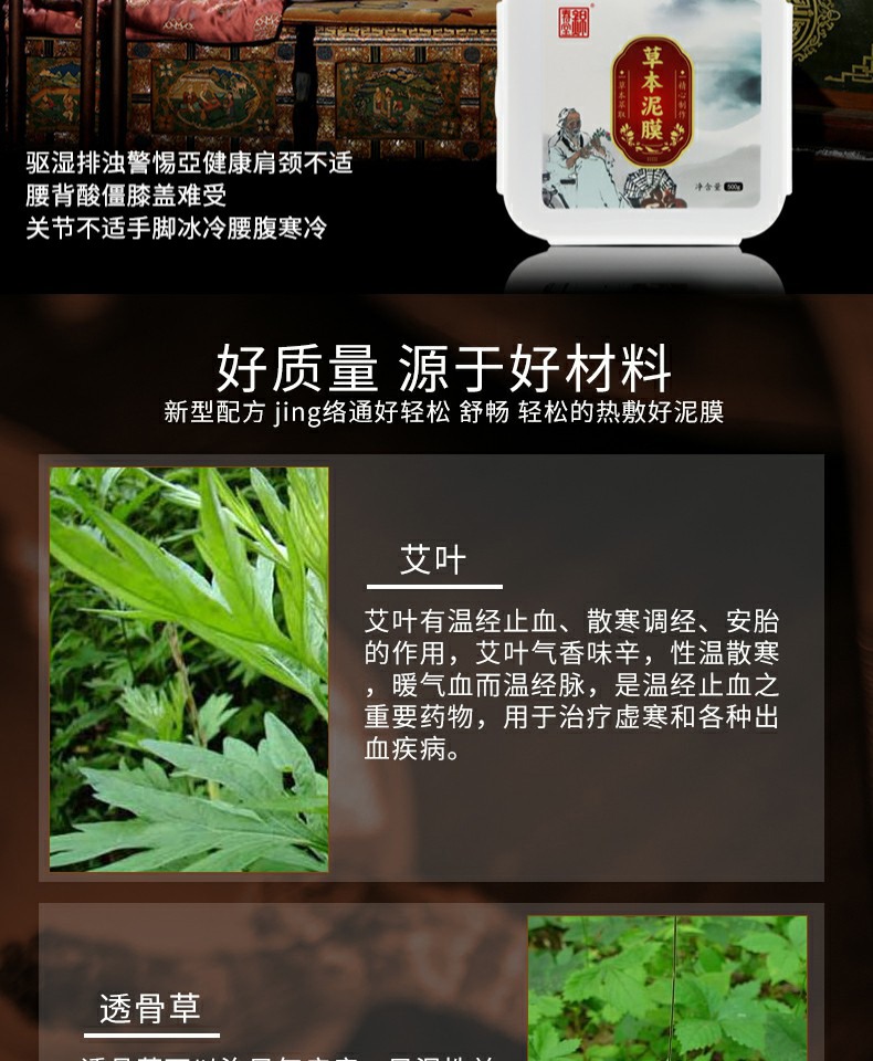 美容院专用,草本泥膜,植萃精华,全程无菌,祛湿排浊,适用于肩颈,腰背酸痛,膝盖难受,关节不适等!!精选艾叶,透骨草,伸筋草,火山泥!!全身可使用!